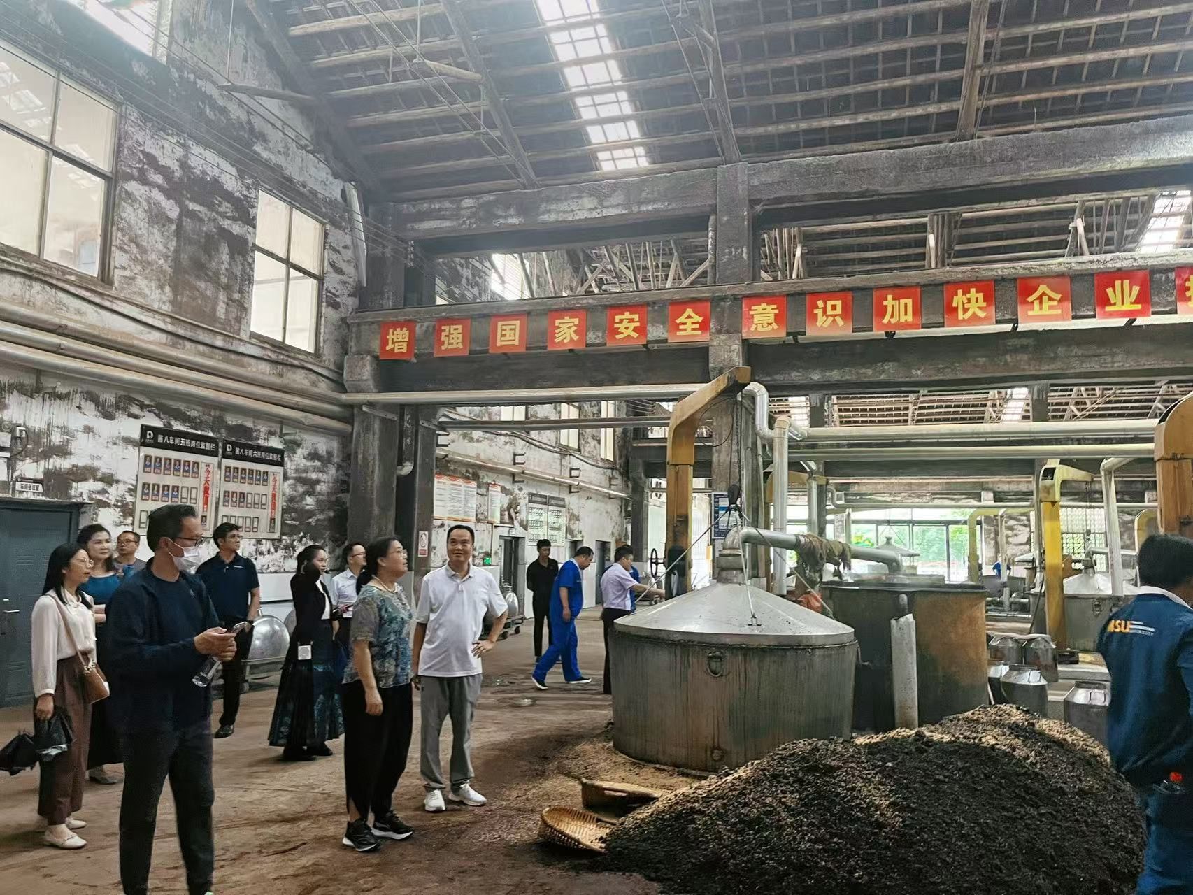 在丹泉酒业总经理潘正福的陪同下,韦仕珍一行实地参观丹泉集团工业园区,深入生态酿酒车间、制曲车间、酒文化馆及洞天酒海洞藏基地等区域。调研过程中,潘正福详细介绍了丹泉酒业的发展历程、产业布局、核心技术优势、品牌建设成果及未来战略规划。