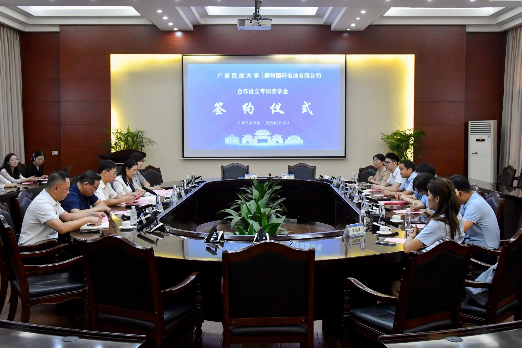 9月16日,校党委常委、副校长高兴宇会见柳州国轩电池有限公司董办主任兼董事长助理宋美一行。双方就拓展东盟新能源发展领域合作、探索国际化人才培养新模式、校企合作等内容展开座谈交流,共同签署设立东盟留学生专项奖学金合作协议。(初审/石岳 图文/林琦惠 编/韦丽娜 复审/李建瑾 终审/孙寿媚)