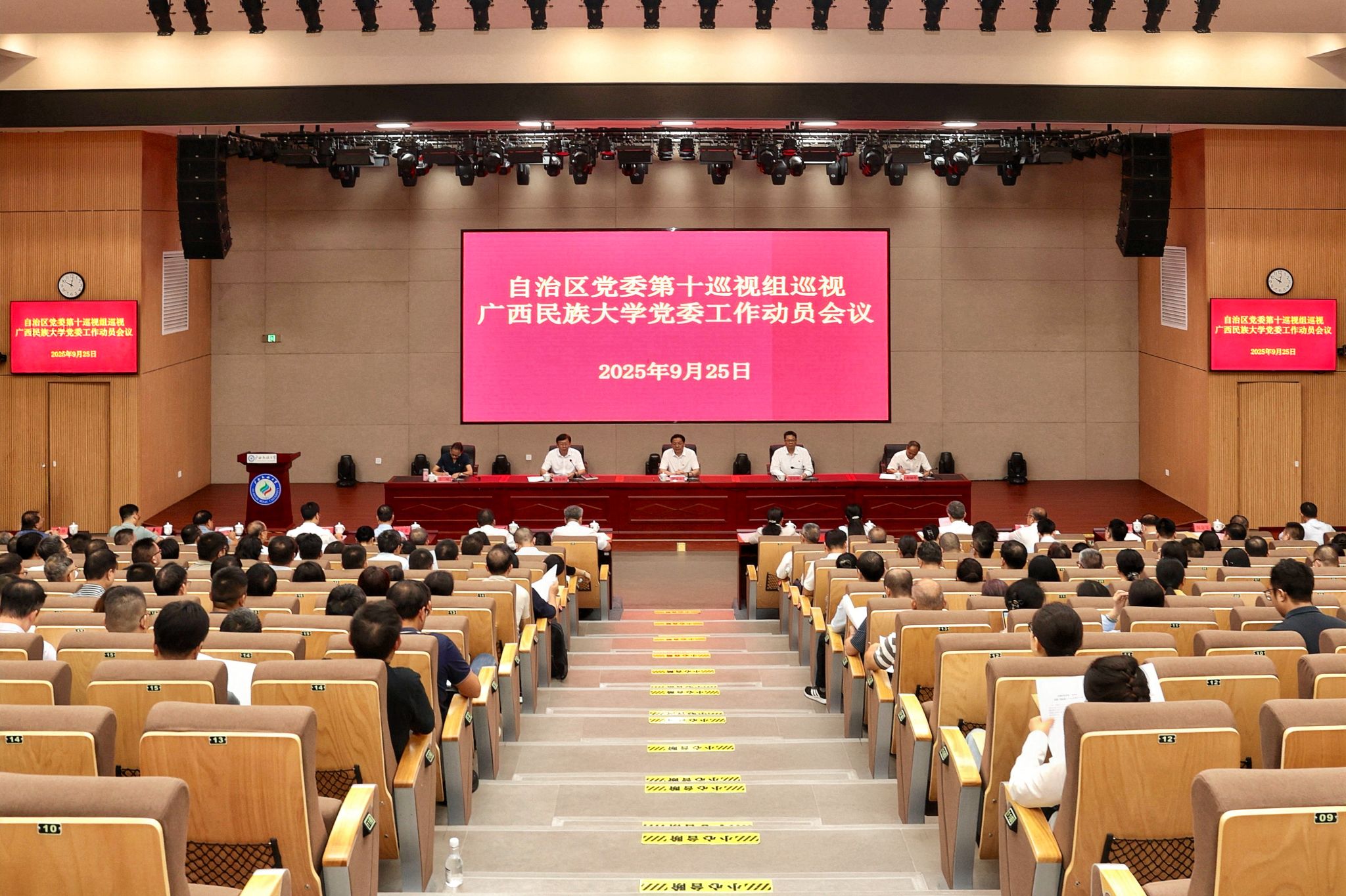 根据自治区党委统一部署,2025年9月25日上午,十二届自治区党委第八轮巡视第十巡视组巡视今年会jinnian官网党委工作动员会召开。自治区党委巡视工作领导小组成员、自治区党委组织部副部长钟勇军,就深入学习贯彻习近平总书记重要讲话精神,自觉接受巡视监督,支持配合本轮巡视工作提出明确要求。自治区党委第十巡视组组长梁旭辉通报了本轮巡视的主要任务和工作安排。今年会jinnian官网党委书记唐平秋主持会议并作表态发言。