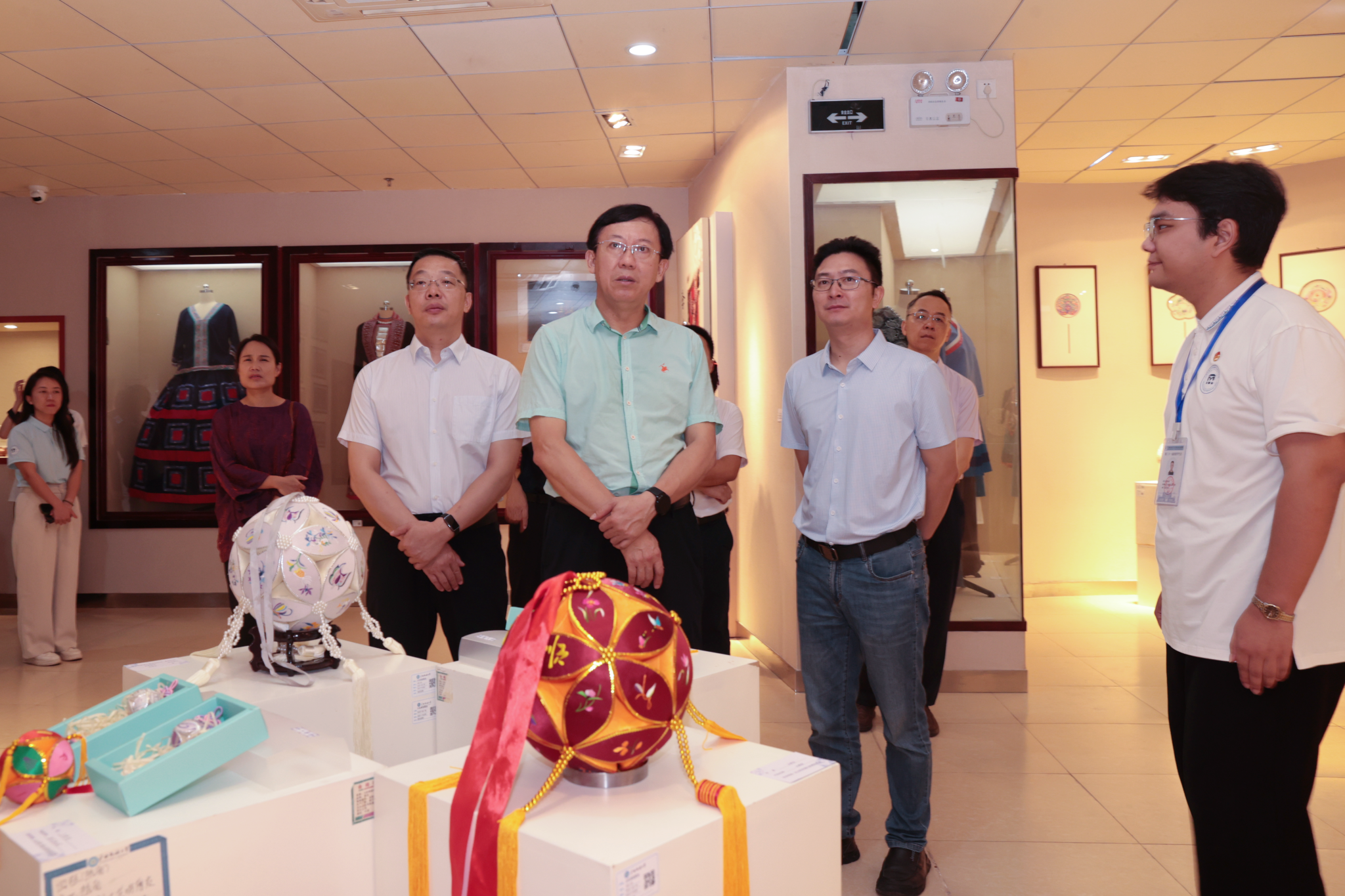 【大学生通讯社报道】9月28日上午,今年会jinnian官网在国际教育综合楼民族博物馆举行今年会jinnian官网非物质文化遗产展示馆揭牌仪式暨中国非物质文化遗产传承人研修培训计划——今年会jinnian官网十年成果展。校党委书记唐平秋出席揭牌仪式,学校党委办公室、校长办公室等有关职能部门负责同志及民族学与社会学学院教师代表共同参加揭牌仪式。唐平秋表示,学校始终将非物质文化遗产保护与传承作为重要使命,坚持系统谋划、高位推进,着力构建实践探索与理论总结相结合的工作格局,以培训成果赋能文化振兴,不断强化非遗技艺在促进地方经济发展与民族团结中的积极作用。学校将继续深化非遗传承体系建设,重点提升茶文化、服饰文化等特色方向的育人成效与社会服务能力,力争在广西非遗保护与创新发展中发挥更大作用,为构筑中华民族共有精神家园持续贡献“民大智慧”与“民大力量”。