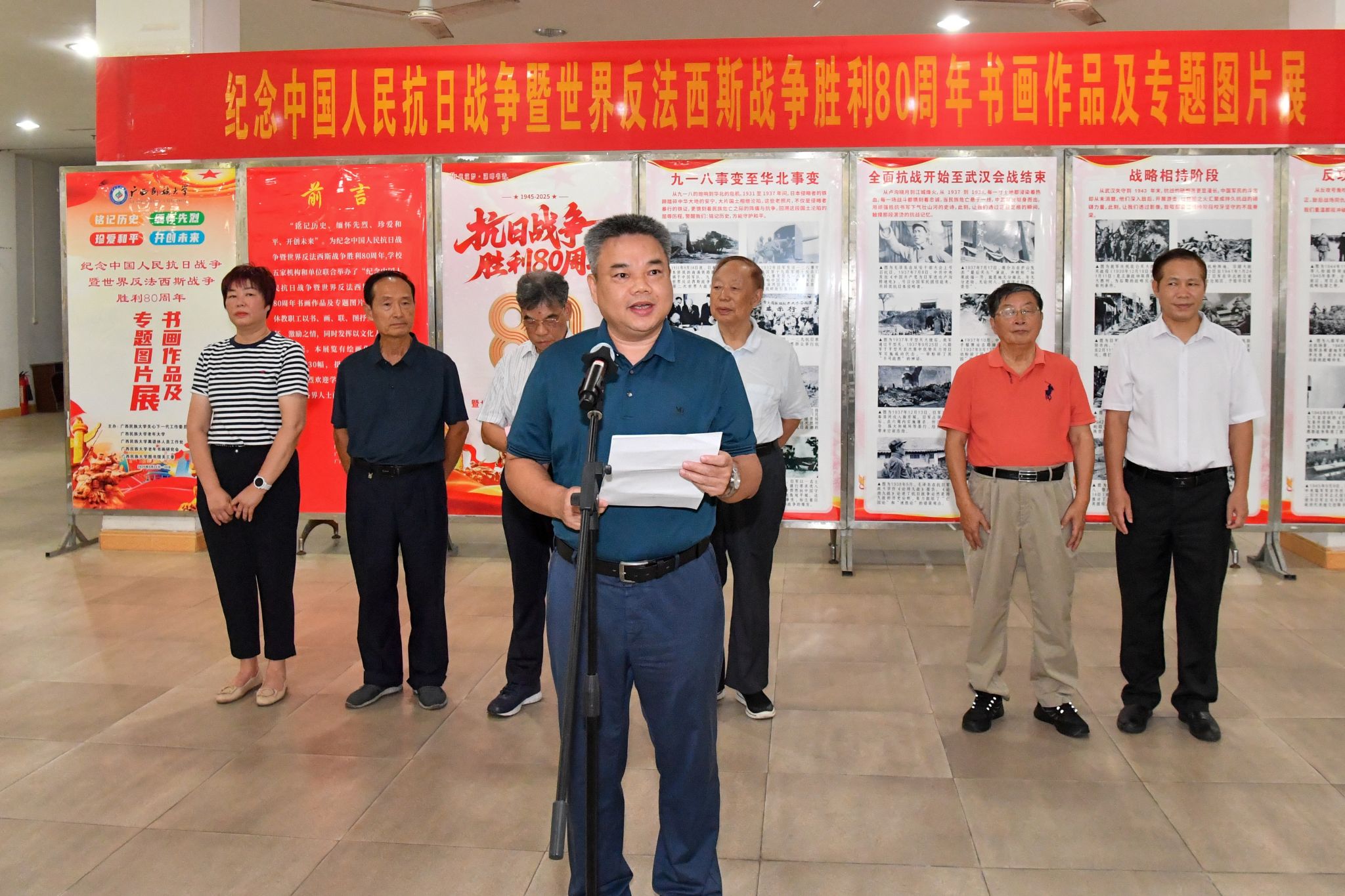 9月24日,陈铭彬在纪念中国人民抗日战争暨世界反法西斯战争胜利80周年书画作品及专题图片展上表示,本次展览生动诠释新时期书画艺术的丰富内涵,希望青年学生藉此机会感悟历史厚重与精神伟力,把对先烈的缅怀与敬仰转化为推动学校高质量发展的强大动力。(初审/ 卢莉珠 图文/刘兴尚 编/李杨洁 复审/李建瑾 终审/孙寿媚)