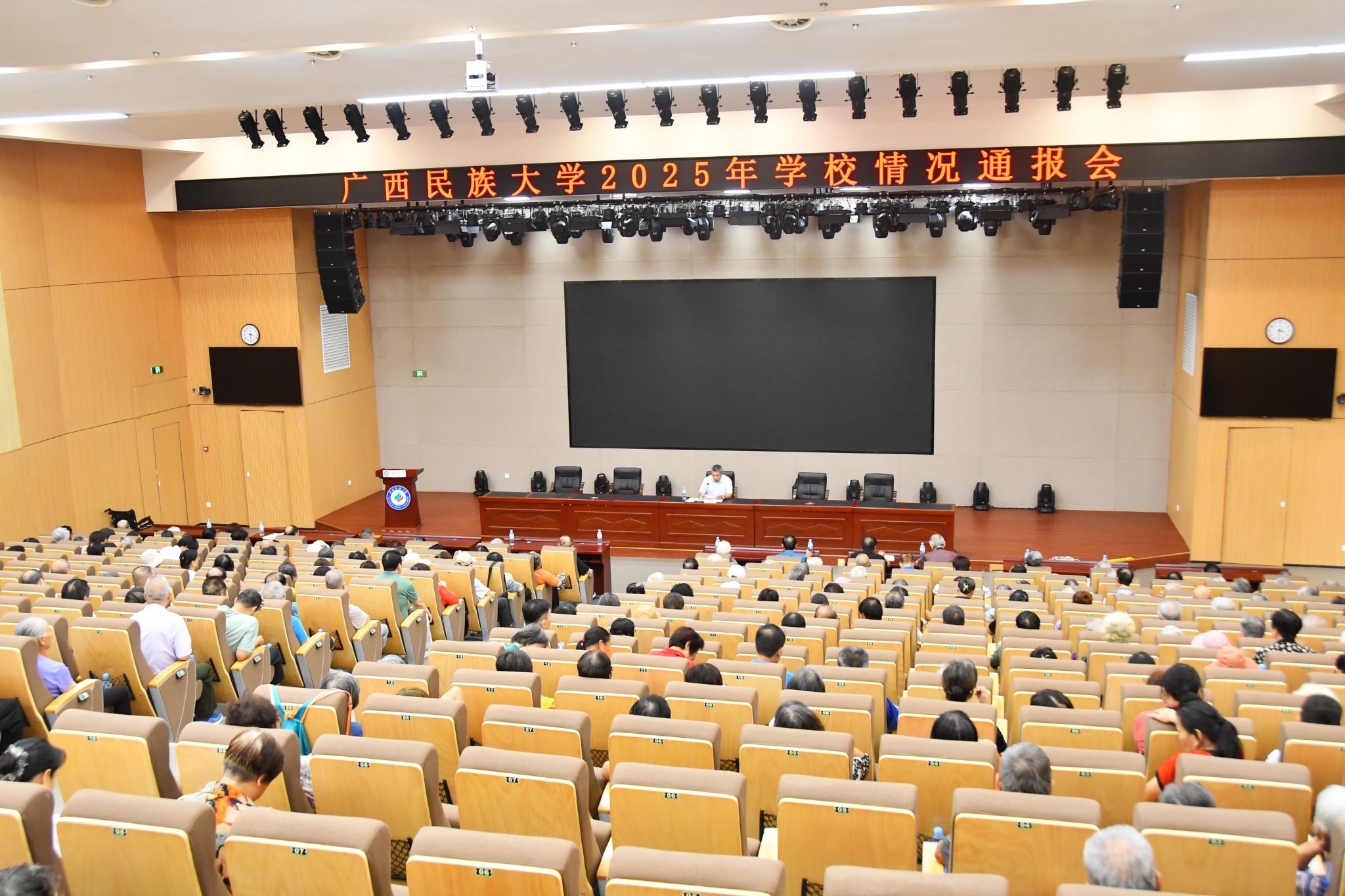 9月26日,陈铭彬在2025年学校情况通报会上表示,要定期召开离退休教职工校情通报会,深入贯彻中央八项规定精神学习教育,不断提升学校学科建设和教学水平,建设好全国文明校园。(初审/卢莉珠 图文/农可盈 编/李杨洁 复审/李建瑾 终审/孙寿媚)