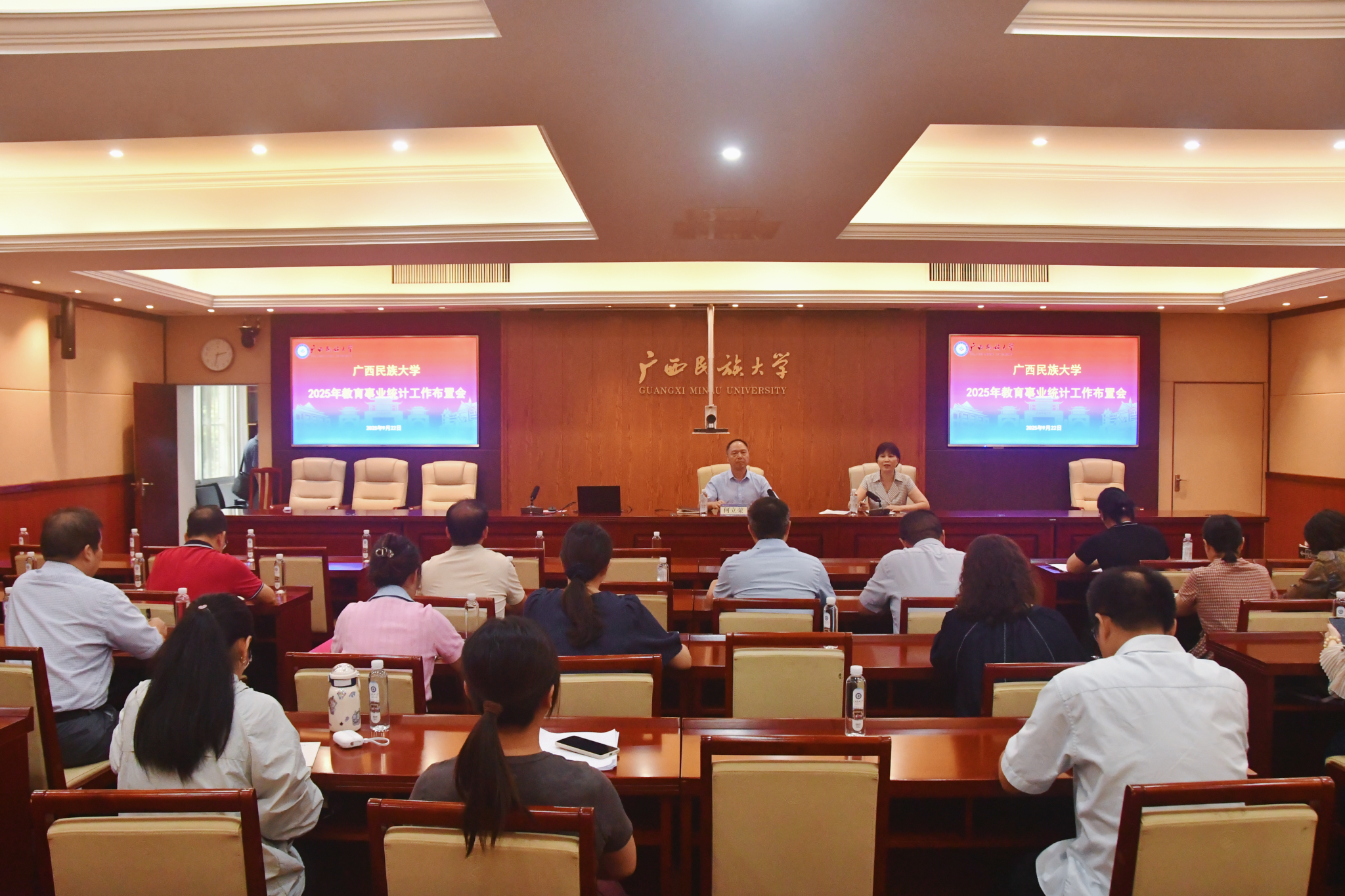 9月22日,校党委常委、副校长何立荣在2025年教育事业统计工作布置会上表示,各部门要提高政治站位,充分认识教育事业统计工作的重要性,坚持依法依规统计,加强数据的采集业务培训,筑牢统计数据质量防线,加强教育事业统计数据分析,提升服务学校高质量发展的能力。(初审/陈媛 图文/李嘉莲 编/黎倩雅 复审/李建瑾 终审/孙寿媚)