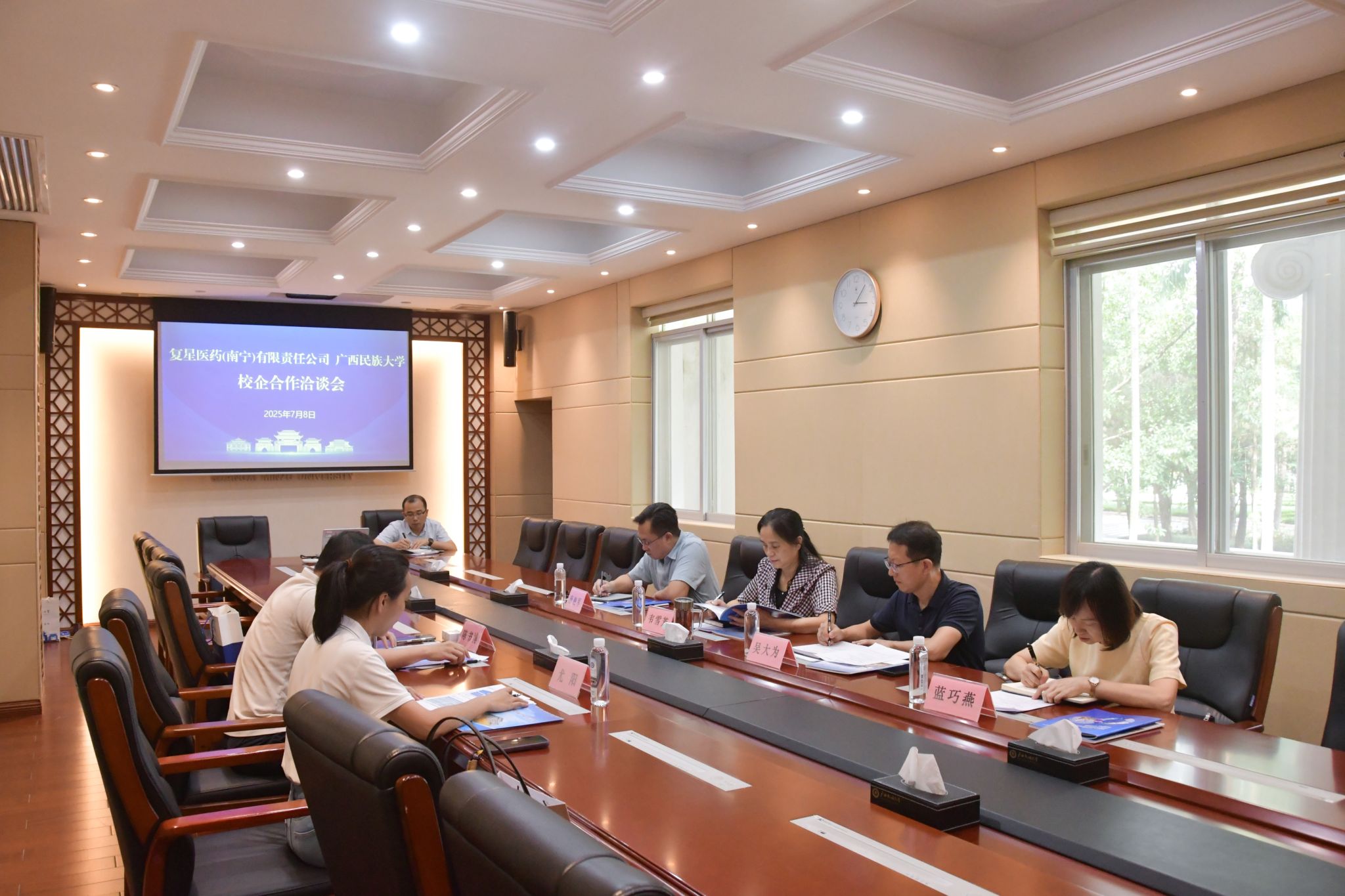 7月8日,自治区纪委监委驻学校纪检监察组组长、学校党委副书记、纪委书记韦雪芳与复星医药(南宁)有限责任公司陈书博一行开展校企合作洽谈会。双方围绕东南亚市场布局下的人才需求、专业培养、实习就业等方面进行深入交流,并就未来合作方向达成多项共识。(初审/肖耀科 图文/马小丽 编/邓思馨 复审/韦利坤 终审/孙寿媚)