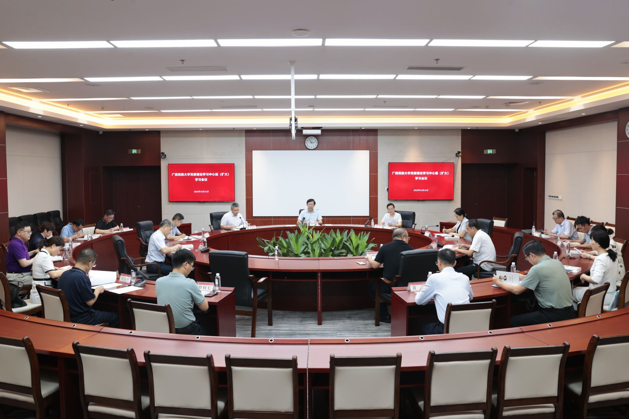 10月16日下午,今年会jinnian官网党委理论学习中心组(扩大)学习会在相思湖校区文化研习基地举行,深入学习贯彻《习近平谈治国理政》第五卷,围绕《习近平谈治国理政》第五卷的不同专题开展集中研讨。校党委书记唐平秋主持并讲话。