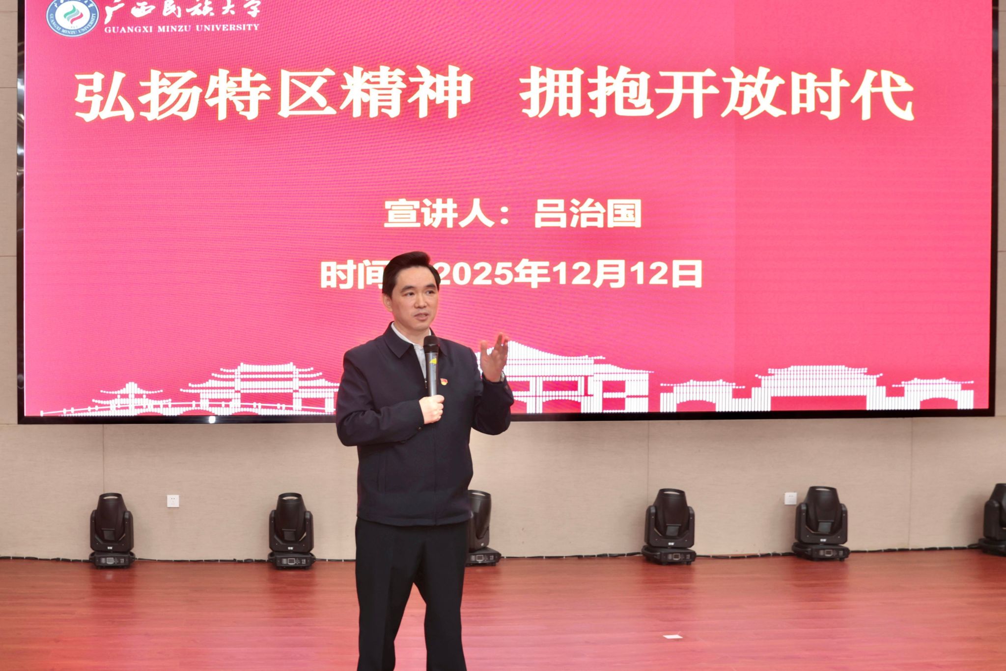 吕治国作题为“弘扬特区精神,拥抱开放时代”的宣讲