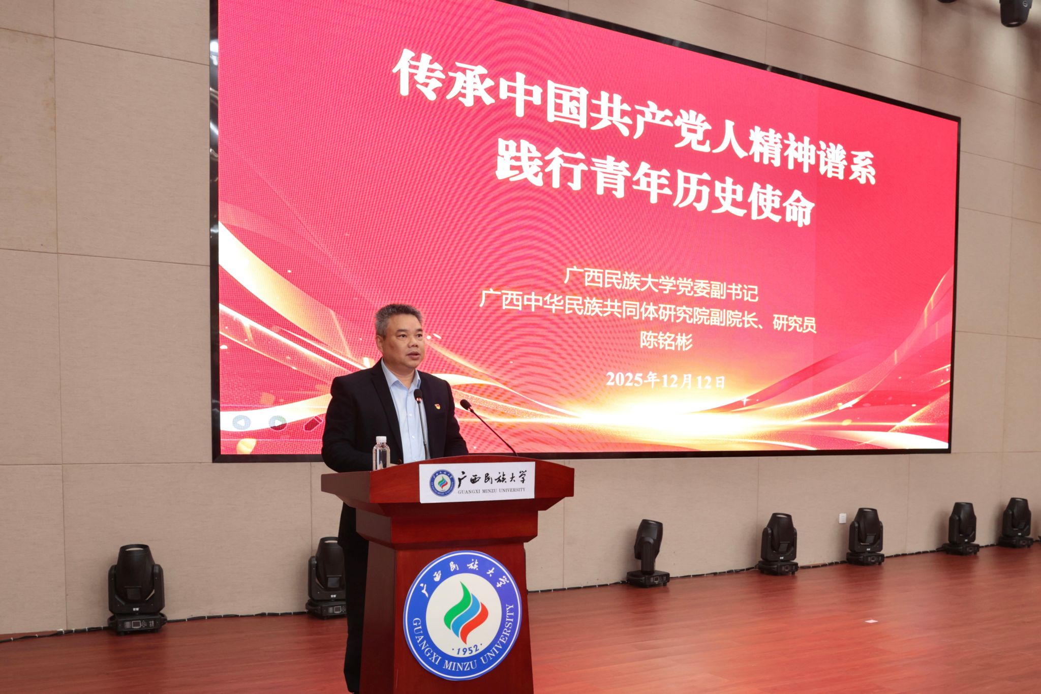 陈铭彬作题为“传承中国共产党人精神谱系,践行青年历史使命”的宣讲