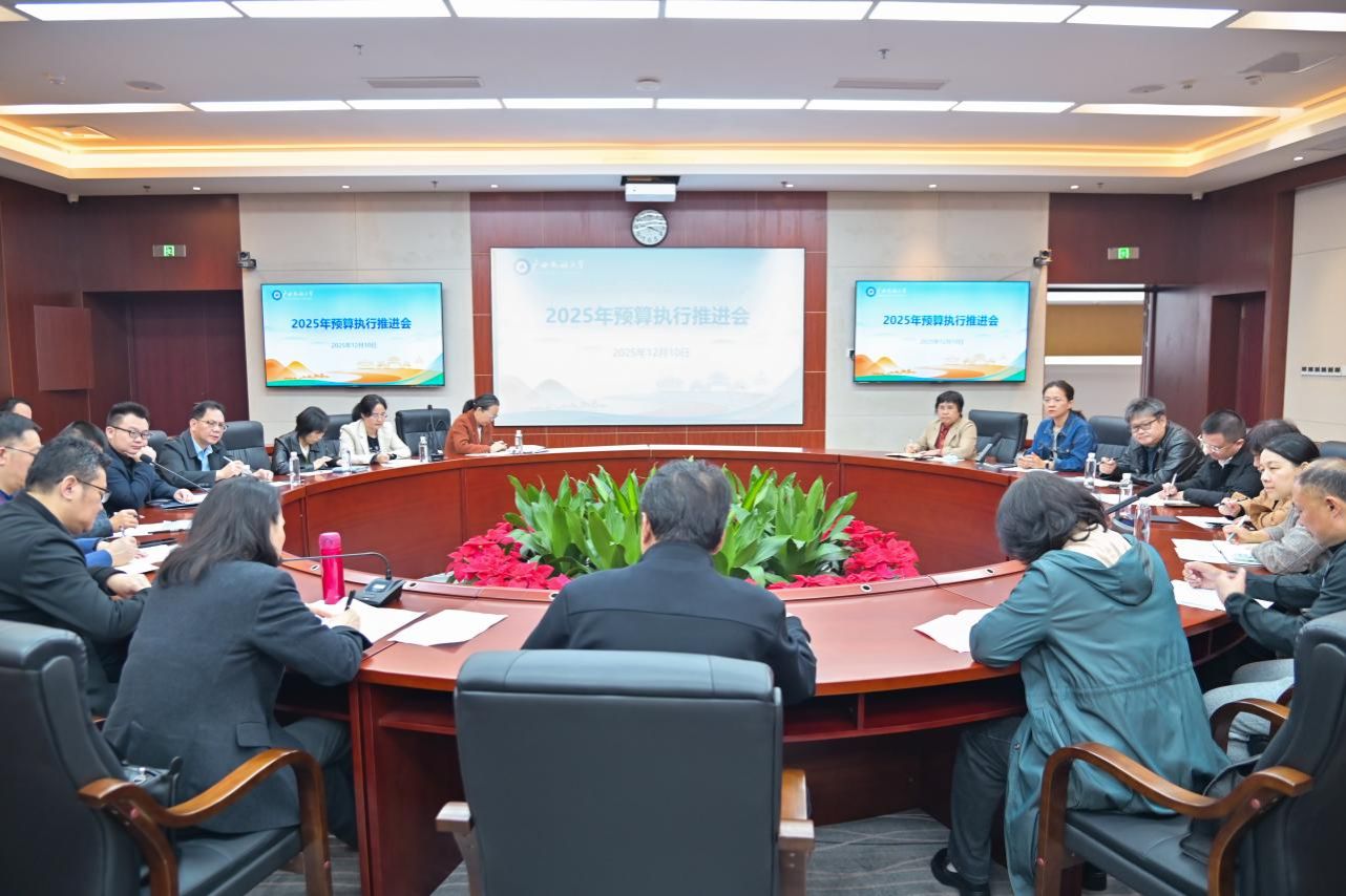 12月10日,校党委常委、副校长蔡高根主持召开2025年预算执行推进会。要求各有关单位提高政治站位,重视预算执行,合力推进预算执行,将2026年预算编制与学校“十五五”发展规划紧密衔接,按照“资金跟着项目走”原则,做好项目储备工作和可行性论证,把资金用在刀刃上、花在紧要处。(初审/黄素心 图/覃慧岚 文/梁婷 编/韦丽娜 实习编辑:苗予嘉 复审/韦利坤 终审/孙寿媚)