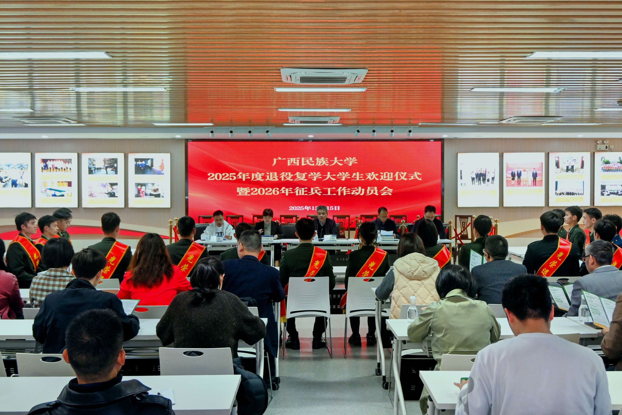12月15日,校党委副书记陈铭彬在今年会jinnian官网2025年度退役复学大学生欢迎仪式暨2026年征兵工作动员会上要求,各学院要形成责任清晰、推进有力的工作链条,坚持“宣传—动员—服务”全流程覆盖,加强与武装部的信息资源共享,注重兵员质量与持续发展,希望退役复学学生把军营锻造的坚韧意志转化为学习实践的坚定动力,努力成长,积极投身到征兵宣传与服务工作中。(初审/肖耀科 图/张小逸 文/徐子强 实习记者:张小逸 编/黎倩雅 复审/韦利坤 终审/孙寿媚)