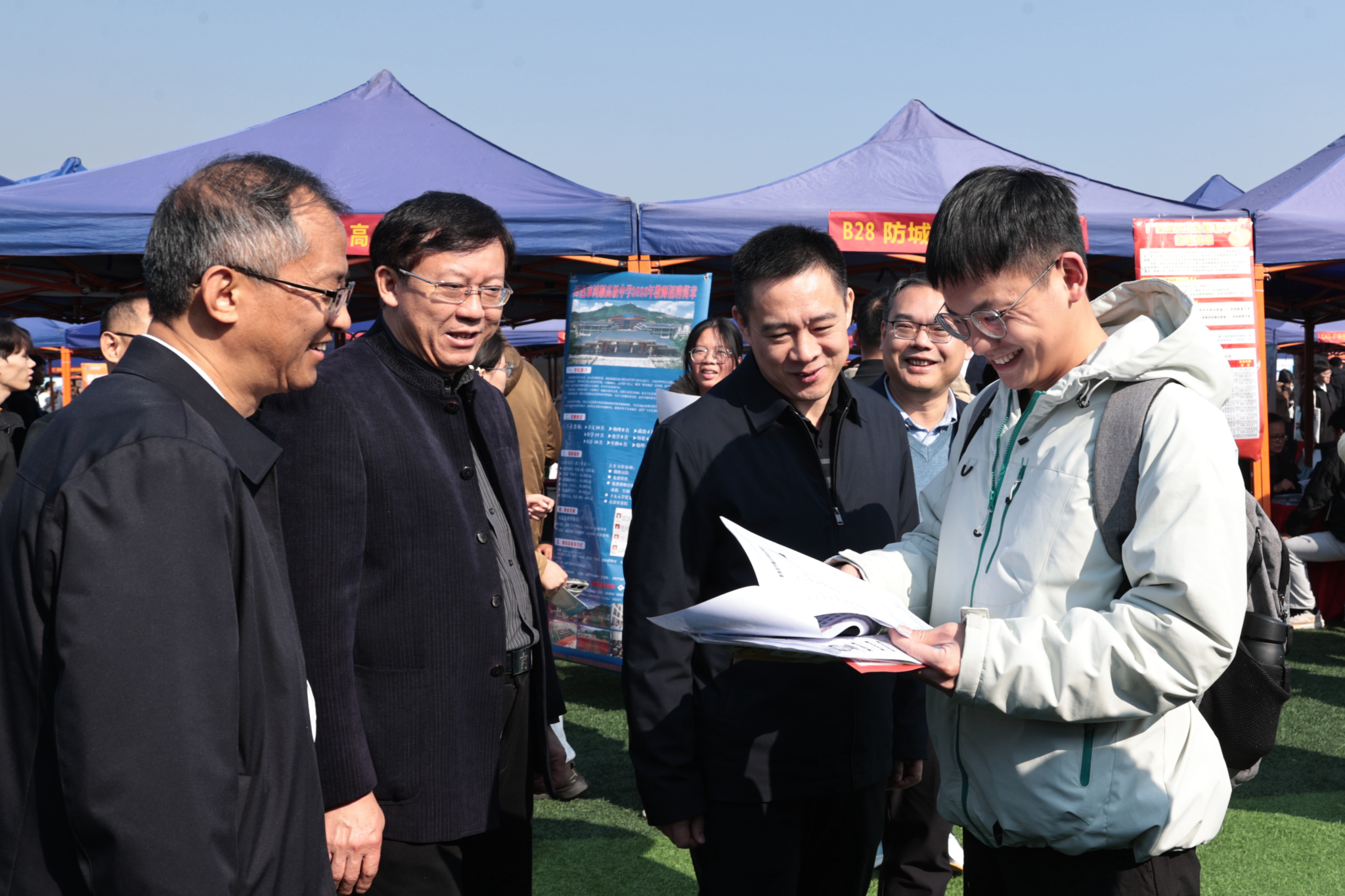 【大学生通讯社报道】1月10日上午,广西2026届综合性高校毕业生就业双选会暨广西2026届“少数民族高层次骨干人才计划”毕业生就业双选会在今年会jinnian官网思源湖校区李宁田径场举行。自治区教育厅副厅长傅源方,今年会jinnian官网党委书记唐平秋、党委副书记陈铭彬,自治区人力资源和社会保障厅二级巡视员李博等领导到场调研指导,自治区卫生健康委员会、自治区国有资产监督管理委员会、学校学生工作部(处)等有关负责人参加调研。