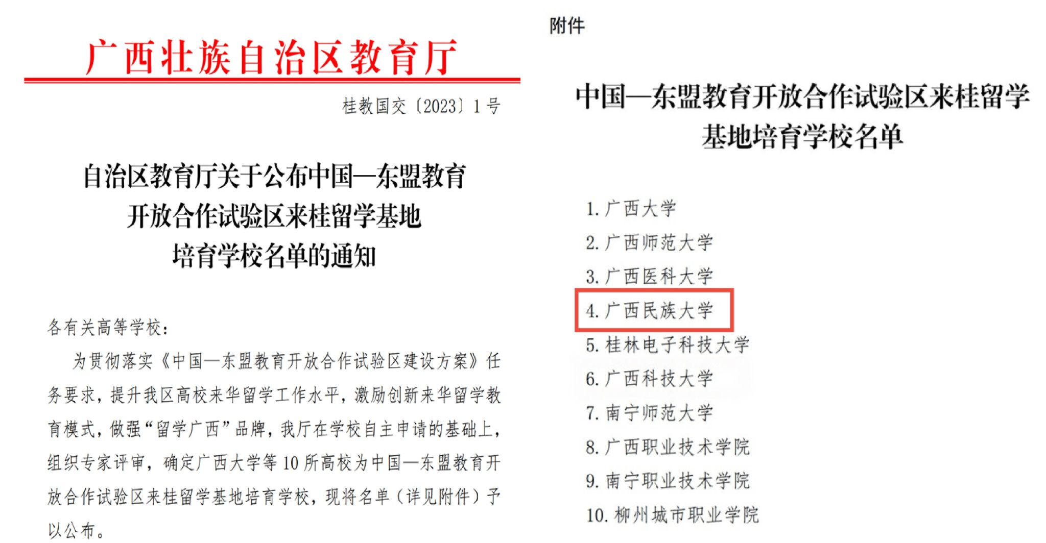 2023年学校获批首批中国-东盟开放合作试验区来桂留学基地