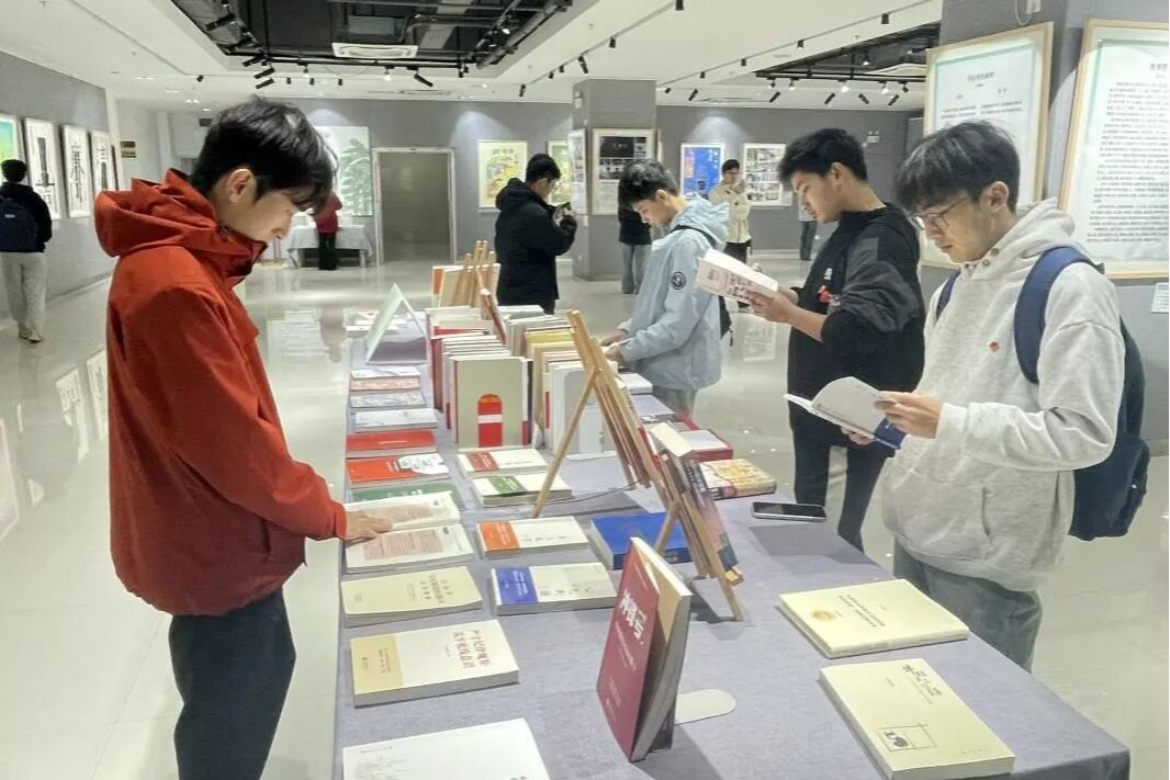 学校依托红色教育阵地开展沉浸式党员教育。图为政治与公共管理学院师生参观“百年奋进路”党史学习教育长廊。