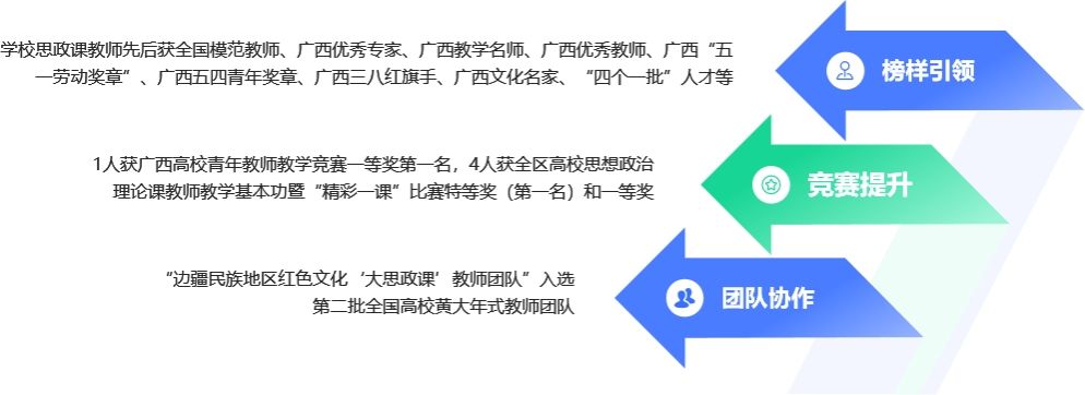 思政工作体系不断健全。以“一站式”学生社区与“一院一品”育人项目为抓手,深入推进“三全育人”综合改革,营造多方协同的良好育人生态。全面推进“大思政课”建设,创新“课程思政”与“思政课程”同向同行机制,8门课程获自治区级课程思政示范课,立项建设校级课程思政示范课程104门。持续加强思政课教师与专职辅导员队伍专业化发展,“边疆民族地区红色文化‘大思政课’教师团队”入选第二批全国高校黄大年式教师团队。多名辅导员在广西高校素质能力大赛中获奖,涌现出一批广西“最美高校辅导员”和“高校辅导员年度人物”,展现出党建引领下思政工作队伍的扎实成效与良好风貌。