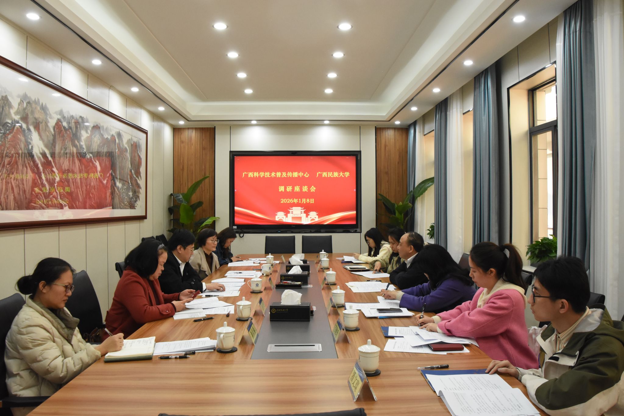 1月8日,校党委常委、副校长高兴宇会见广西科学技术协会副主席刘家凯、广西科普传播中心主任刘惠英一行。会上共同探讨构建校地合作科普育人新机制,就以赛促教促学、科普平台建设、科技文化传播、学科协同创新等内容进行深入交流。(初审/梁桂娥 图文/实习记者:李佳雯 编/韦丽娜 复审/韦利坤 终审/孙寿媚)