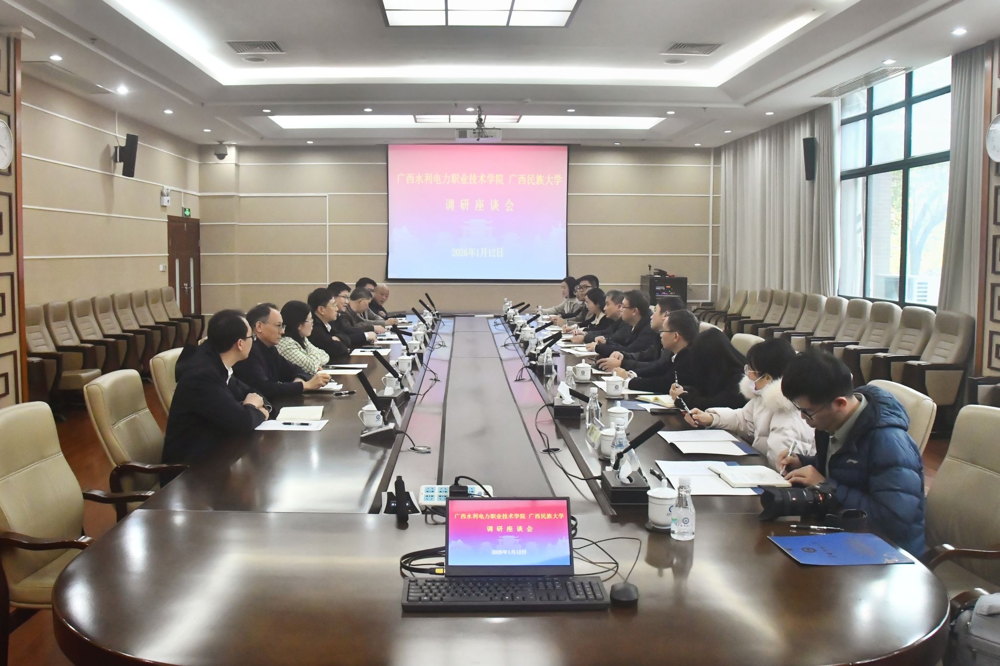 1月12日,校党委常委、副校长高兴宇会见广西水利电力职业技术学院校长刘存香一行。双方就学科建设、人才培养、科研平台打造、重大项目申报等方面展开交流,希望加强合作,推动校际资源共享,实现优势互补。(初审/张丽娟 图文/卢思然 编/李杨洁 复审/韦利坤 终审/孙寿媚)