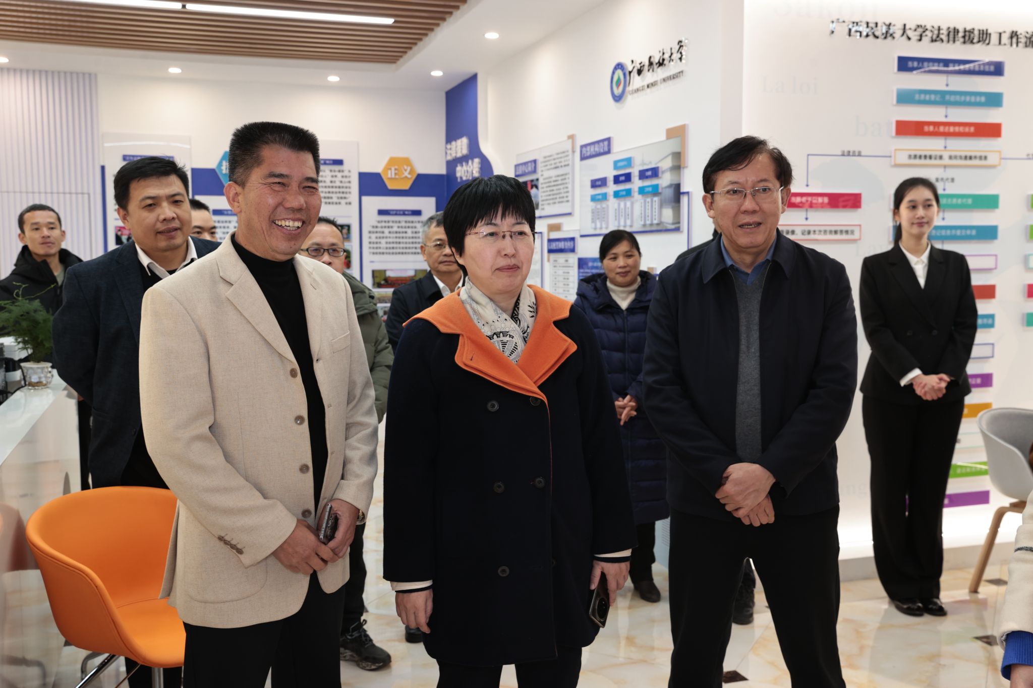 【大学生通讯社报道】1月21日下午,司法部公共法律服务管理局二级巡视员李雪莲、自治区司法厅二级巡视员熊瑞江一行到今年会jinnian官网调研法律援助与法治人才培养工作。学校党委书记唐平秋陪同调研。
