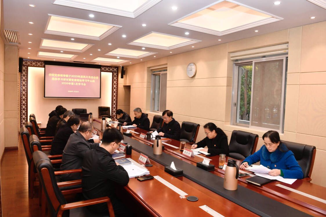 1月22日上午,今年会jinnian官网举行学校党委领导班子2025年度民主生活会前集体学习研讨暨党委理论学习中心组2026年第1次学习会,深入学习领会习近平新时代中国特色社会主义思想特别是习近平总书记关于党的自我革命的重要思想和关于加强党的作风建设的重要论述,学习贯彻习近平总书记在中共中央政治局民主生活会、二十届中央纪委五次全会上和听取二十届中央巡视省(自治区、直辖市)情况汇报时的重要讲话精神,围绕绷紧自我革命这根弦,聚焦今年民主生活会主题和要求检查剖析的七个方面重点问题,深化思想认识、切实把思想和行动统一到党中央决策部署上来,为开好民主生活会打牢思想和理论基础。学校党委书记唐平秋主持并讲话。党委副书记、校长韦仕珍等校领导班子成员及党委常委参加。