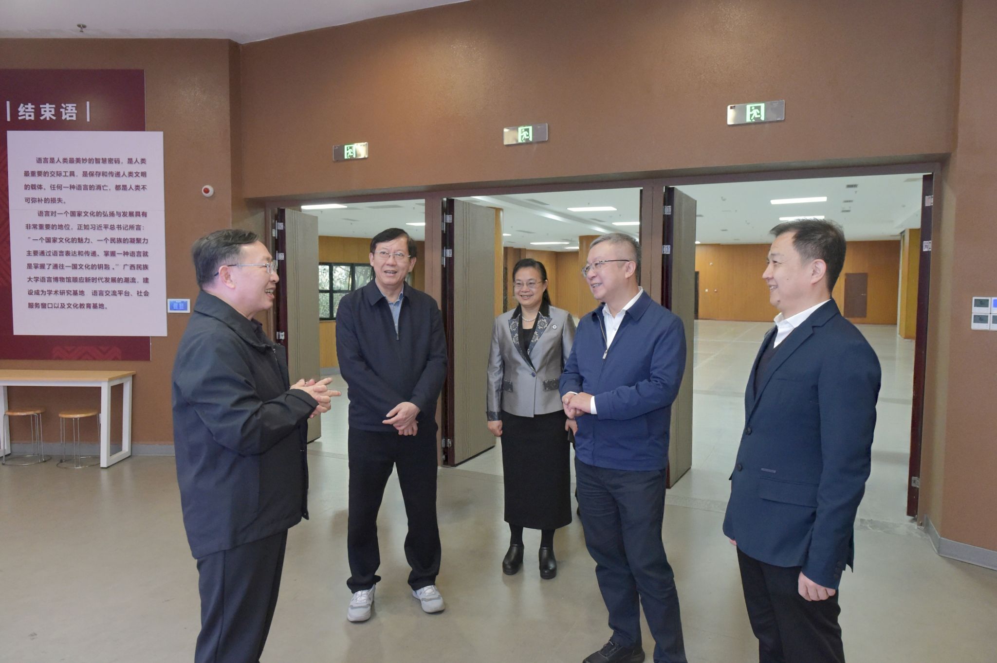 任友群深入调研了新时代“我与祖国共成长”党团主题活动文明实践所、语言博物馆、东盟文化交流中心、世界方块字文化展、广西现代文学馆,对今年会jinnian官网人才培养、科研创新、国际合作等方面取得的成绩表示肯定。他强调,学校要依托深厚积淀,加强语言文字研究,推动民族团结事业发展;发挥办学特色,强化对外交流领域的人才培育力度;充分发挥面向东盟的窗口作用,深化中国与东盟国家之间的友好往来。