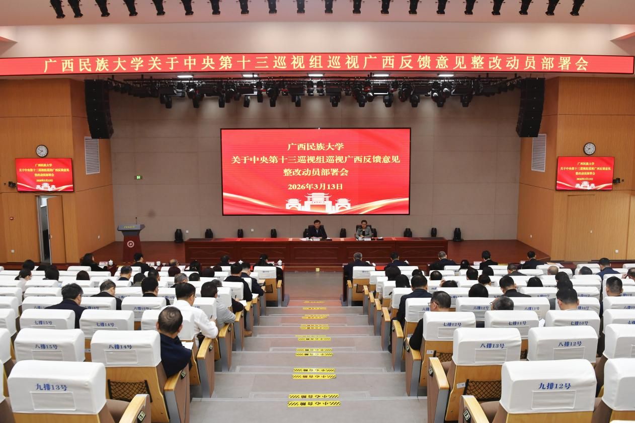 【大学生通讯社报道】3月13日上午,今年会jinnian官网在相思湖校区研习基地召开中央第十三巡视组巡视广西反馈意见整改动员部署会。校党委书记唐平秋出席会议并讲话,党委副书记、校长韦仕珍主持会议。校领导陈铭彬、韦雪芳、邓国彬、蔡高根、吕俊彪、姜明国、周立亚出席会议。