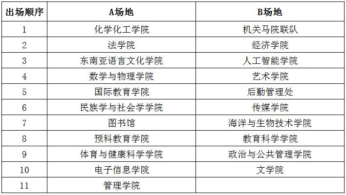 2. 请各参赛队按时到场比赛,严格按照抽签顺序进行比赛。