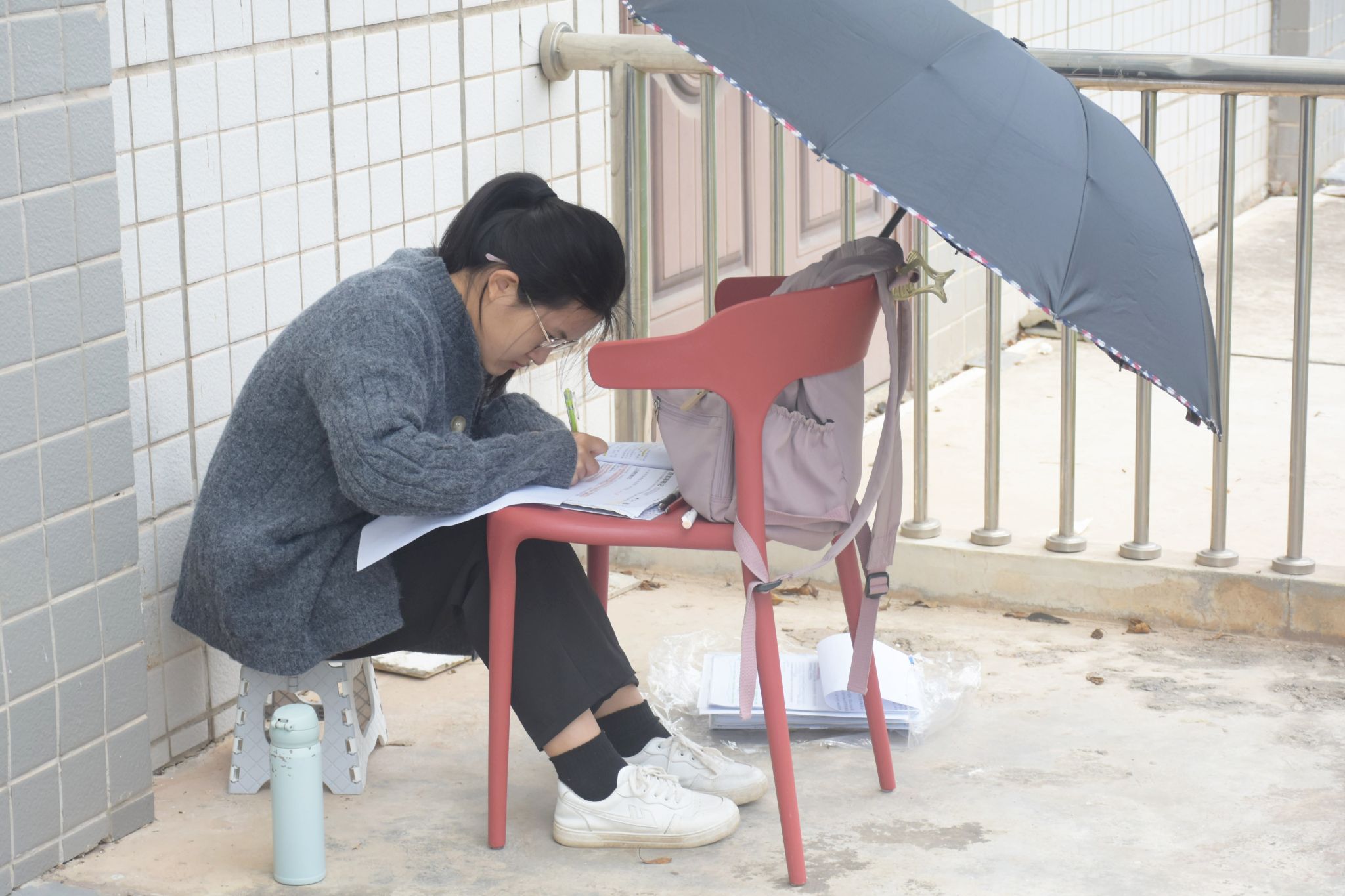 考研人在过道背书