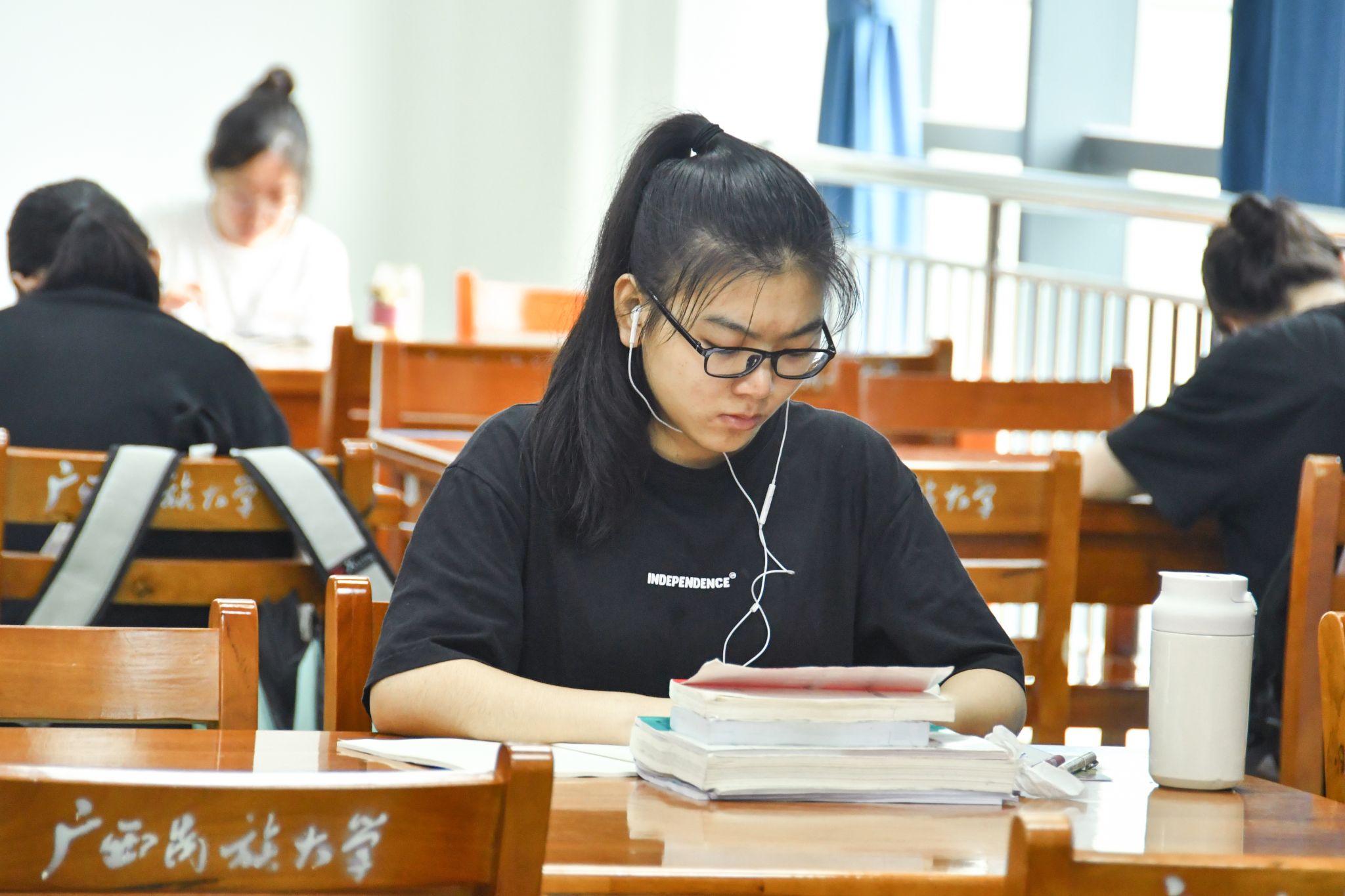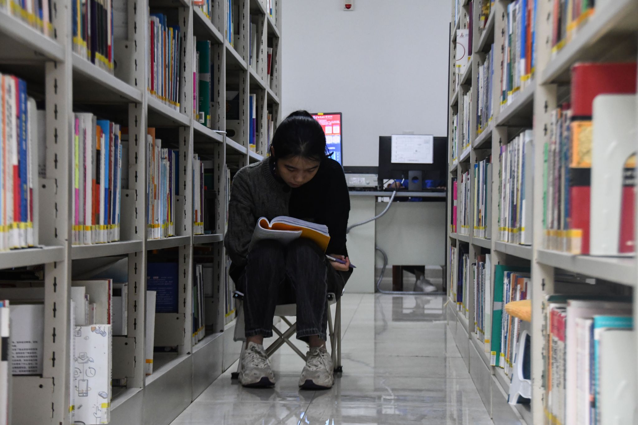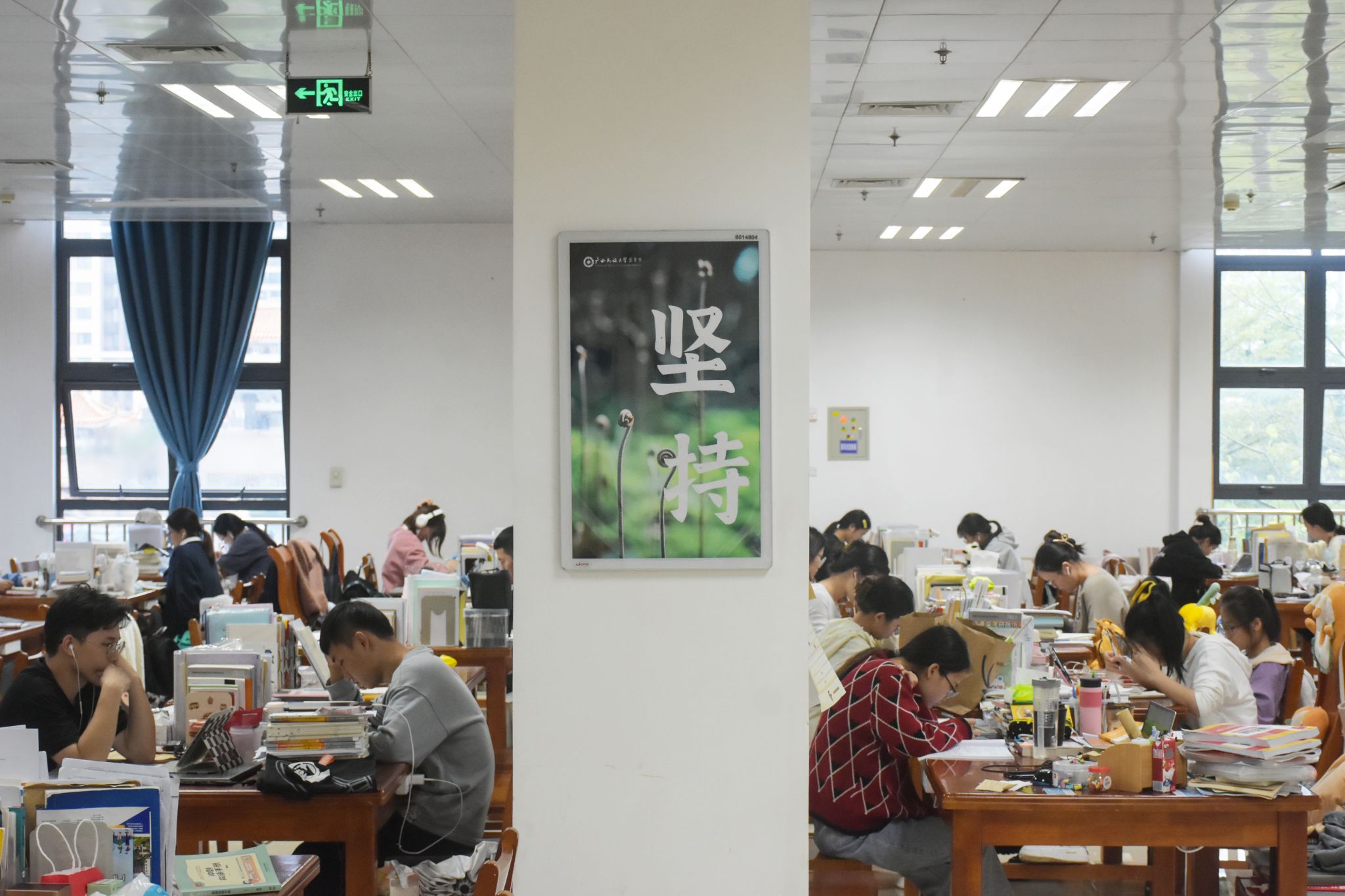 图书馆楼道学生背书