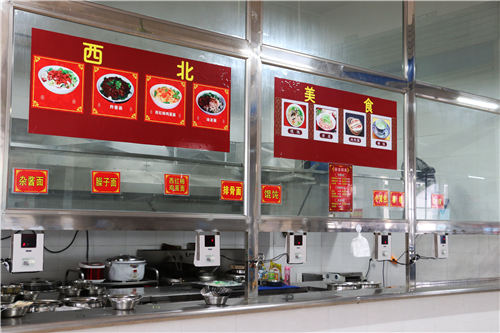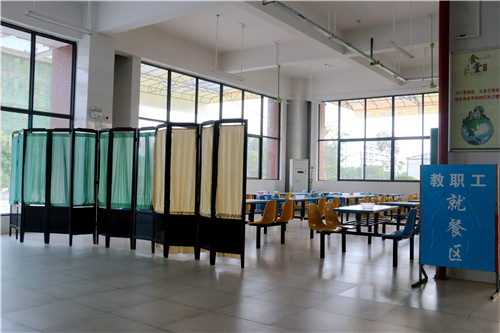 食堂一角,设有教职工就餐区。就餐划分,并不是一种阻隔,是学子对老师和知识的尊敬,是学校对文化的尊敬。