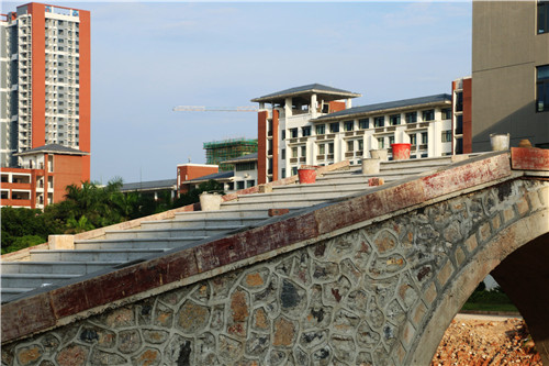校友桥,是崇左校友回赠母校的一份厚礼。正在施工修筑中的校友桥从一堆石沙到逐现雏形,再到屹立湖岸之上,供人行走……它一天天,在师生的见证之下成长,也见证着西校区的发展。