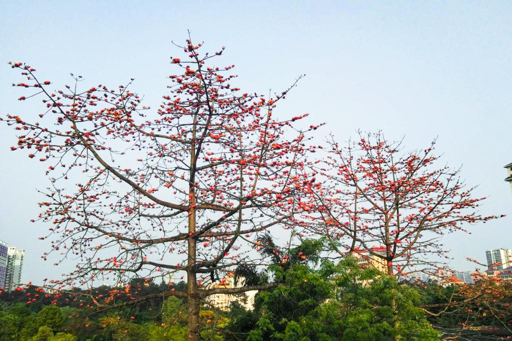 “草树知春不久归,百般红紫斗芳菲。”宫粉紫荆的花朵不大,却纷纷从树叶中探出头,可爱又俏皮;黄花风铃木开得热烈,夺人眼球;木棉花高挂枝头,火红一片,彰显生命的活力。(实习编辑:黄琴影 校对:冼嘉懿)