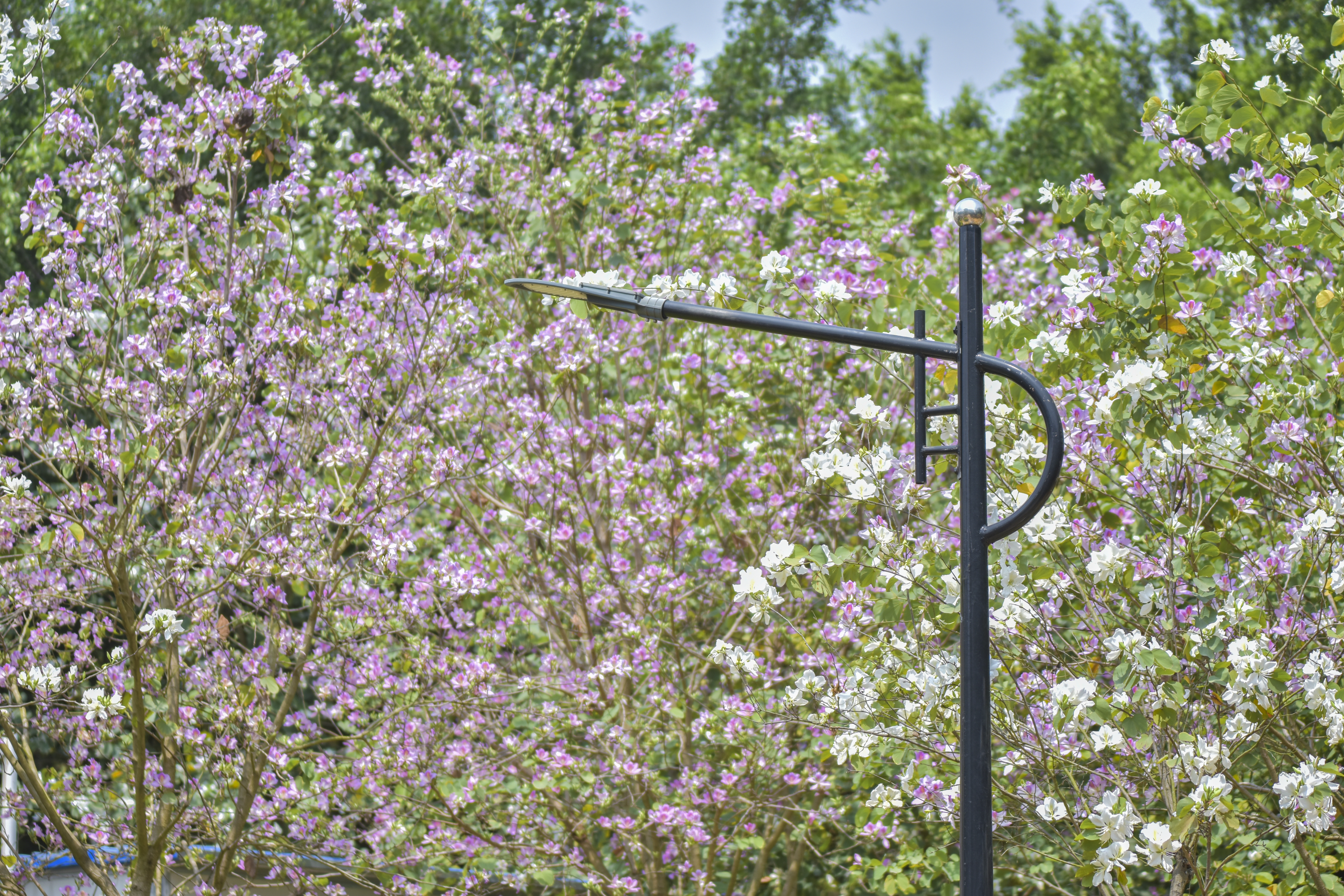 繁花掩映下的校园充盈着书香、花香,来来往往的学子更为校园添一分蓬勃朝气。