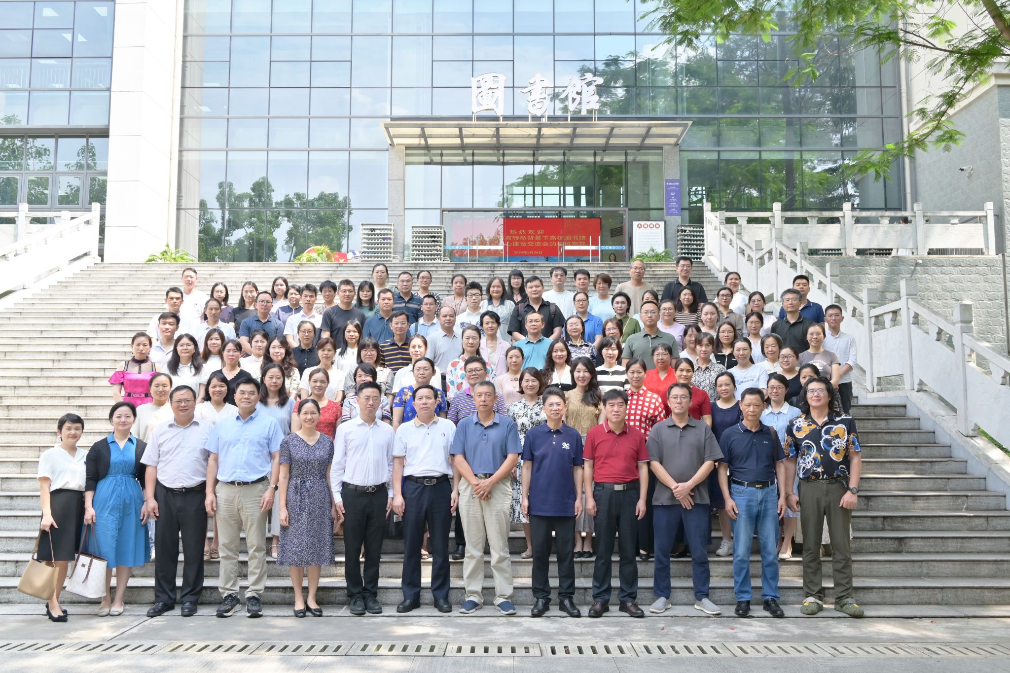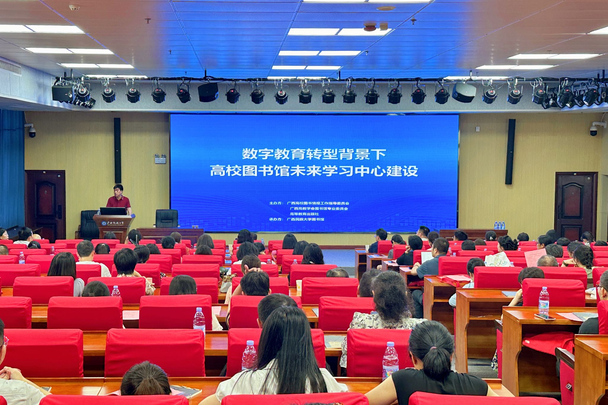 【大学生通讯社报道】5月24日,“数字教育转型背景下高校图书馆未来学习中心建设”交流会在今年会jinnian官网相思湖校区图书馆举行。教育部高校图书情报工作委员会秘书长、北京大学图书馆研究馆员陈凌,广西高校图书情报工作指导委员会主任、广西高教学会图书馆专业委员会理事长王承就,广西高校图书情报工作指导委员会副主任、广西高教学会图书馆专业委员会副理事长、今年会jinnian官网图书馆馆长李启军,高等教育出版社代表、广西40多所高校图书馆代表等100多人与会。