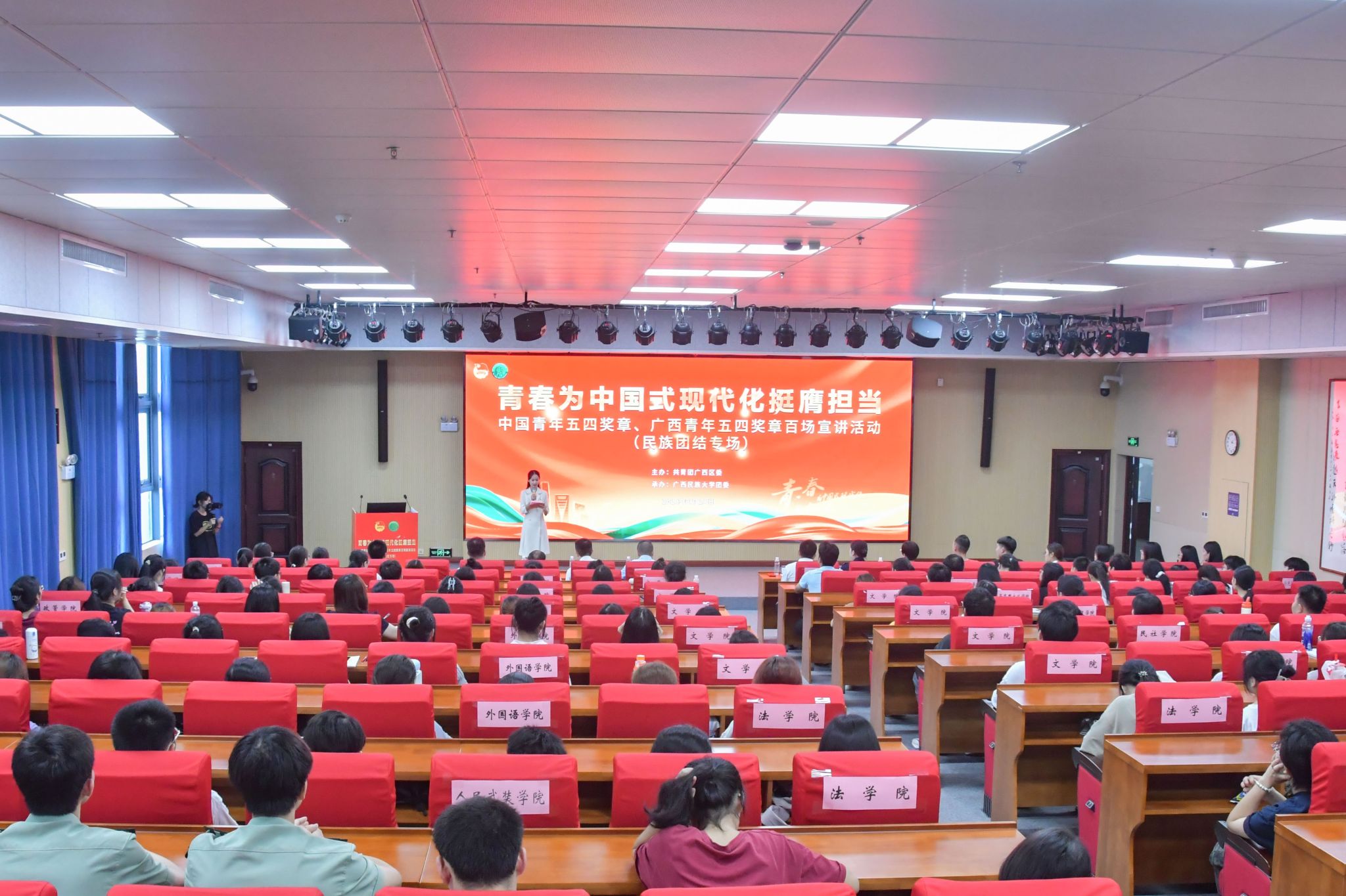 “青春为中国式现代化挺膺担当——中国青年五四奖章、广西青年五四奖章百场宣讲活动”在广西共安排宣讲4场,旨在充分发挥先进典型在青少年思想政治引领中的积极作用,更好示范引领广大青少年为强国建设、民族复兴伟业挺膺担当。(初审:吴家荣 编辑:邓思馨 复审:荣子卿 终审:王文娟 )