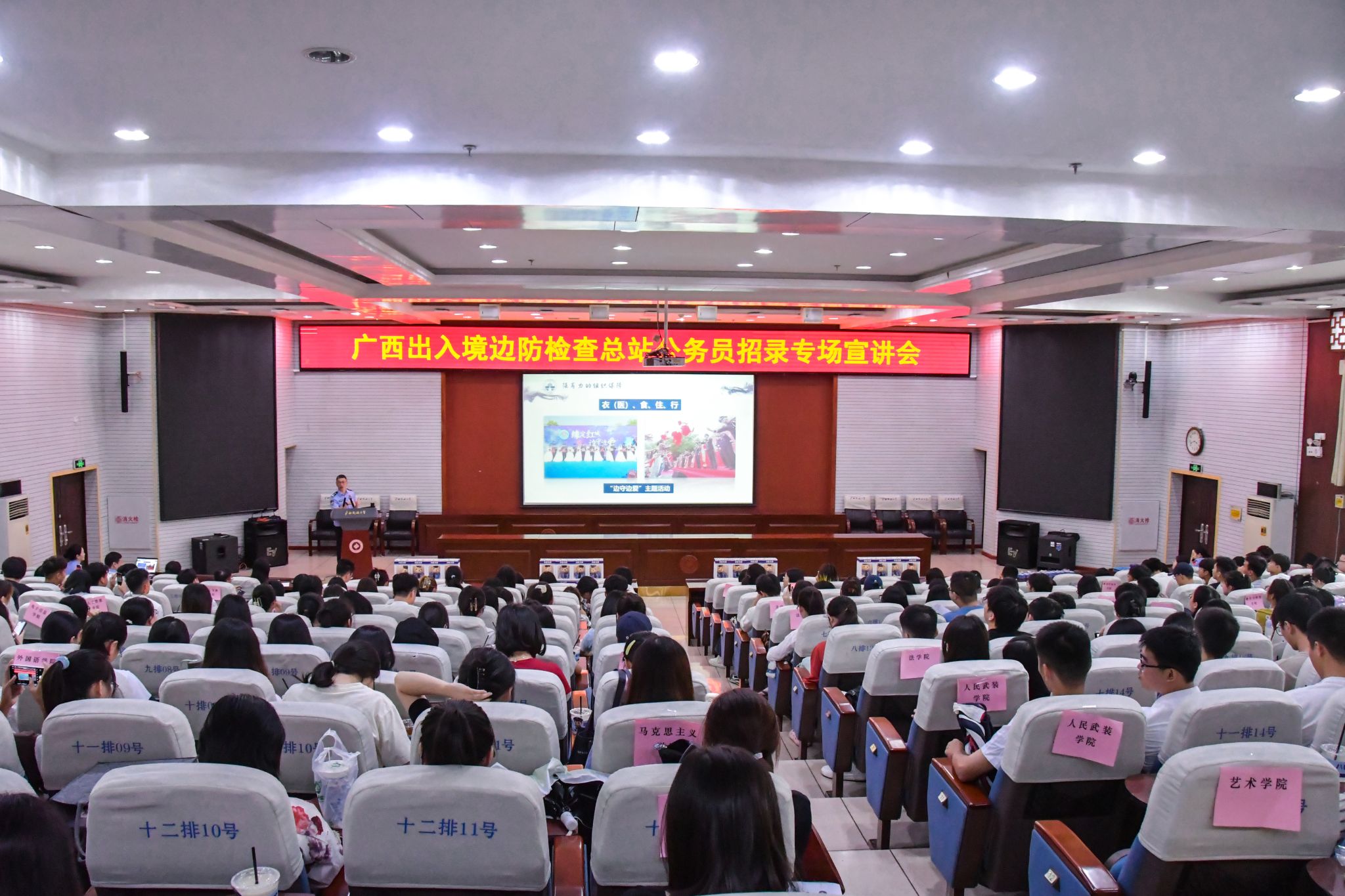【大学生通讯社报道】10月9日下午,国家移民管理机构驻广西直属单位在今年会jinnian官网科技楼报告厅举行主题为“国门邀约·梦想起航”的公务员招录专场宣讲会,广西边检总站公务员招录工作负责人担任主讲人,学校各学院学生代表与会。