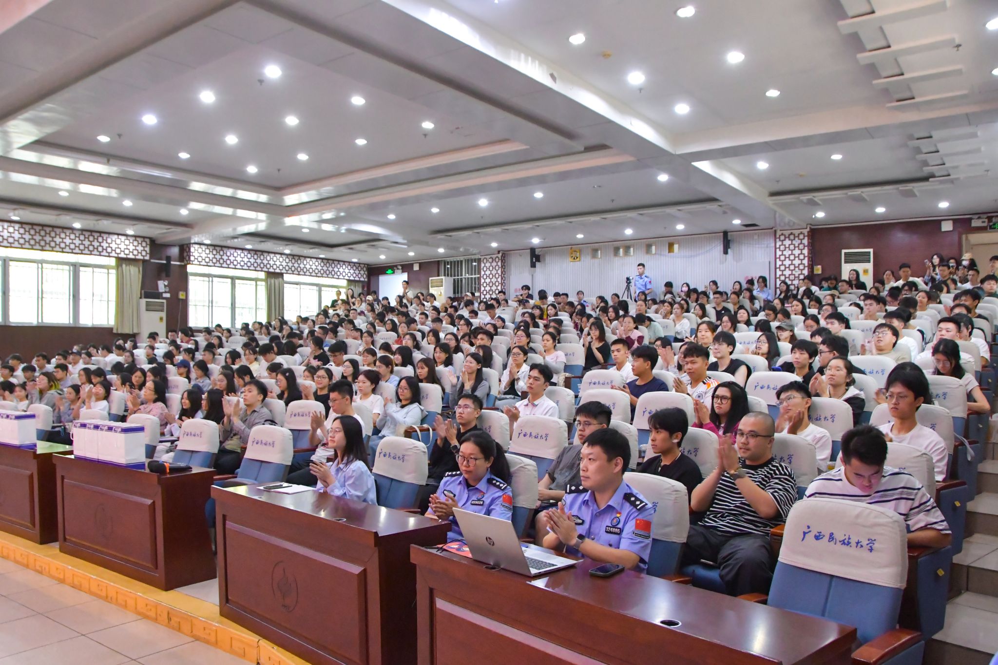 主讲人从三个方面为到场学生介绍国家移民管理机构有关情况,一是职业愿景,移民管理机构处于深化改革的前沿,移民管理事业正在不断拓展延伸,新形势下大有可为。二是发展空间,移民管理警察分类管理分为综合管理、执法勤务和专业技术,职业发展路径清晰,前景广阔。三是保障体系,工资待遇、住房保障、伙食保障等多方面保障要素齐全,体系较为完善。