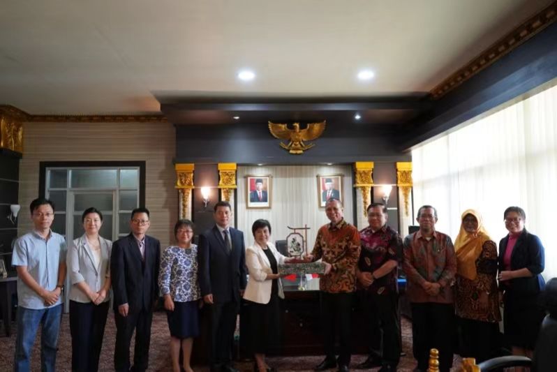 10月10日,印尼丹戎布拉大学校长嘉鲁达·维科校长会见文学院代表团一行并表示欢迎和感谢。他表示,希望双方本着互利互惠的原则友好协商,做好各项事务的具体规划,积极推进加深两个学院之间的合作往来,并预祝双方合作取得圆满成功。