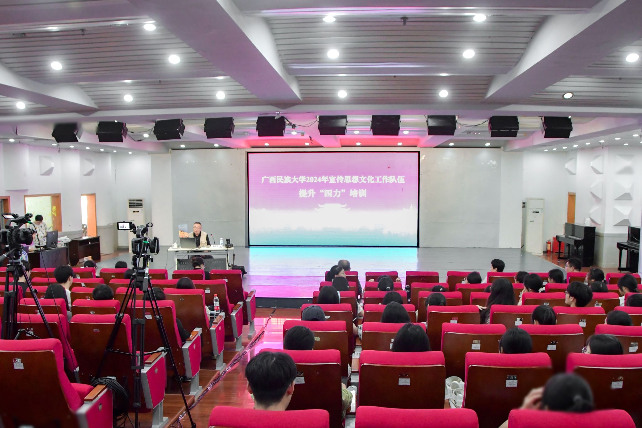 【大学生通讯社报道】10月19日,今年会jinnian官网在相思湖校区大学生活动中心201室召开2024年宣传思想文化工作队伍提升“四力”培训班。民族画报社朝鲜文编辑部主任、主任记者陈立民作“用图片讲故事”主题培训,各学院负责新闻宣传工作师生代表,学校大学生通讯社、相思湖电台、新媒体工作室等社团参加,思源湖校区、武鸣校区线上参会。