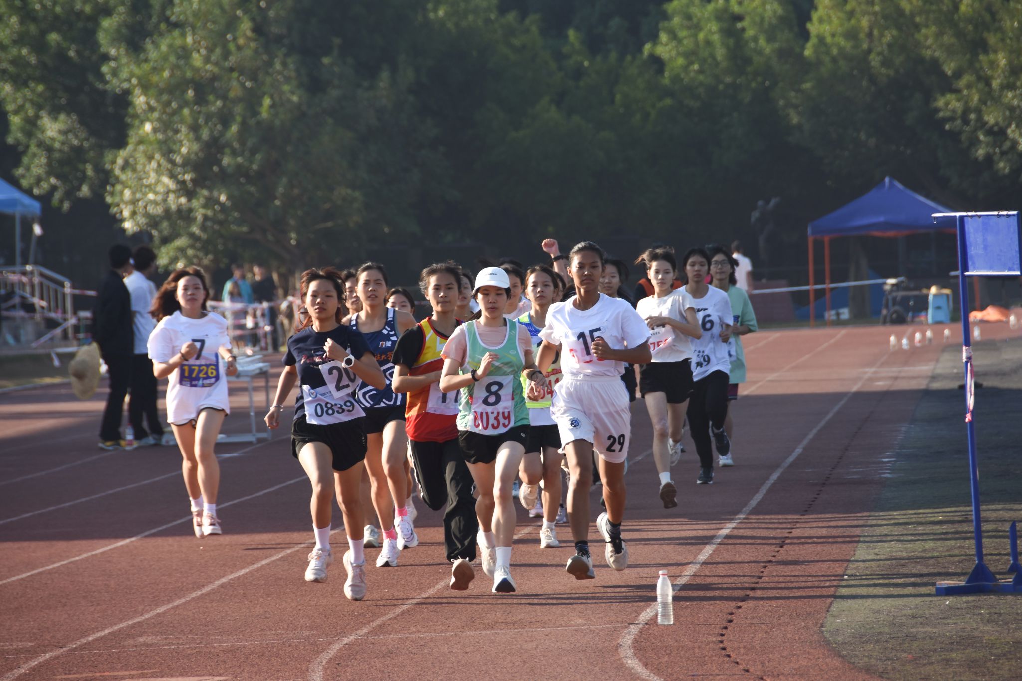31日下午5时15分,女子甲组800米决赛进行。前半程,预科教育学院理科14班的韦慧玲并不急于建立优势,而是选择调整呼吸。进入最后100米时,现场呐喊声持续高涨,她双臂摆动,开始提速,在最后5米实现极限反超,以2分52秒32的成绩夺冠。
