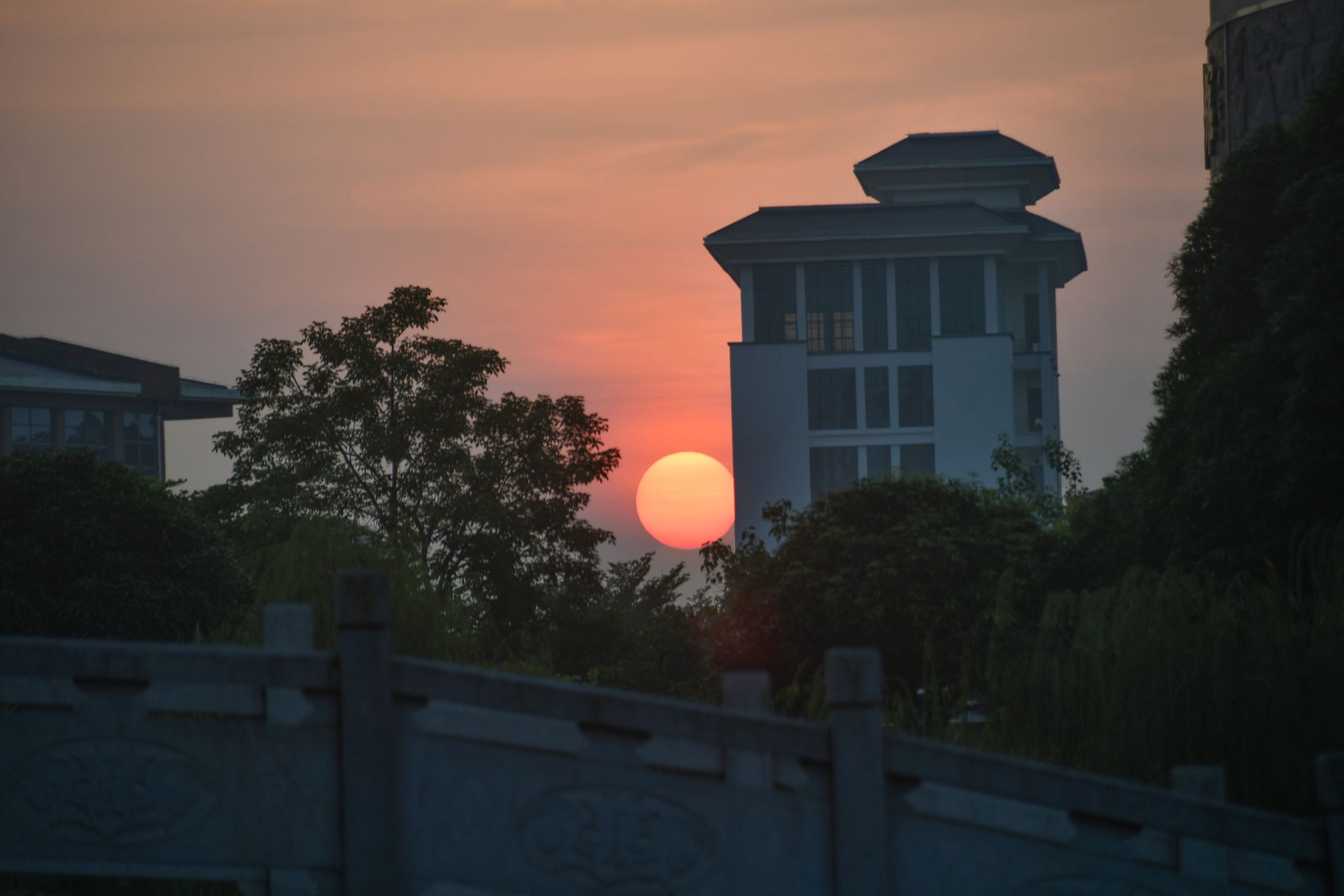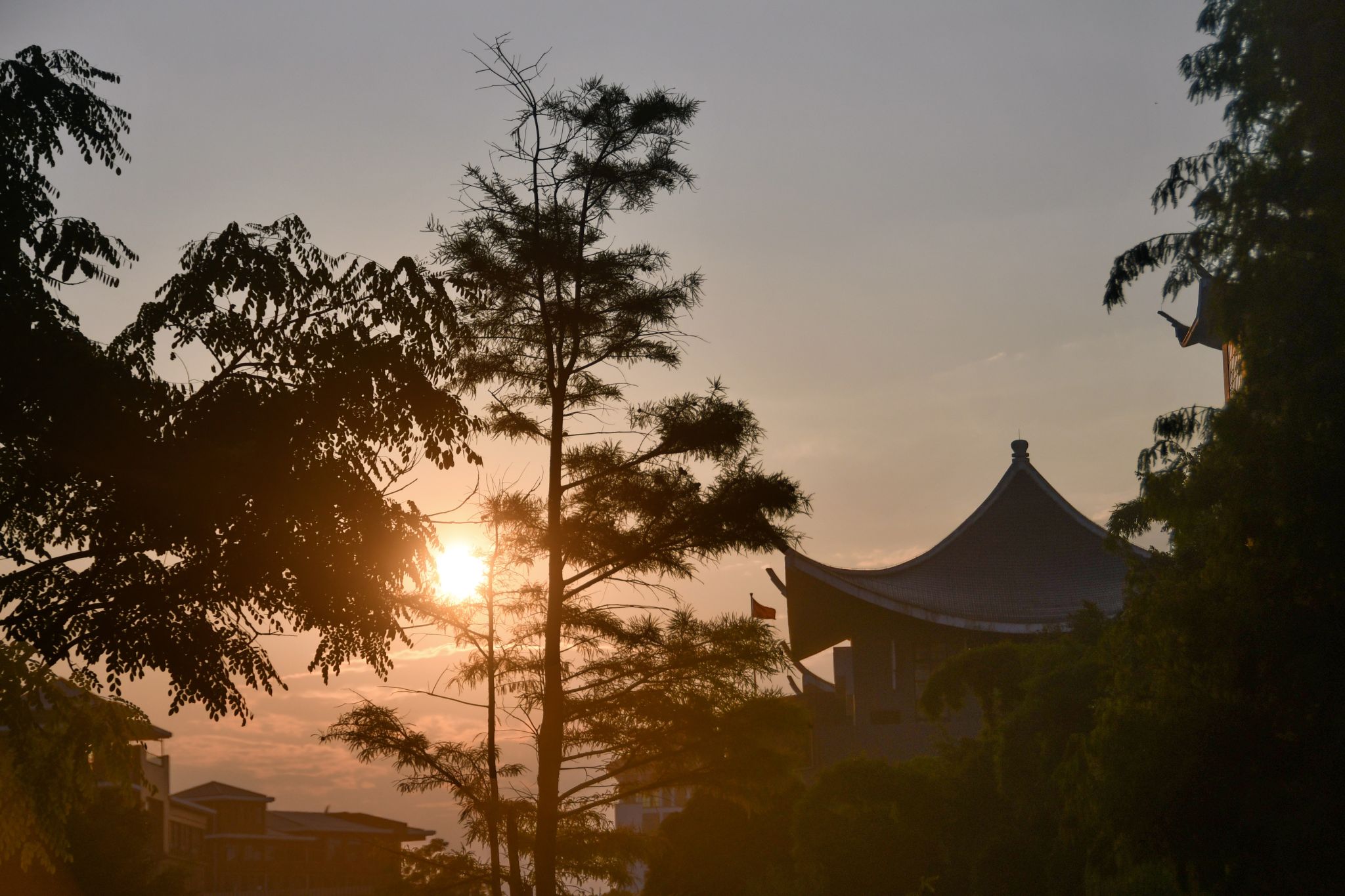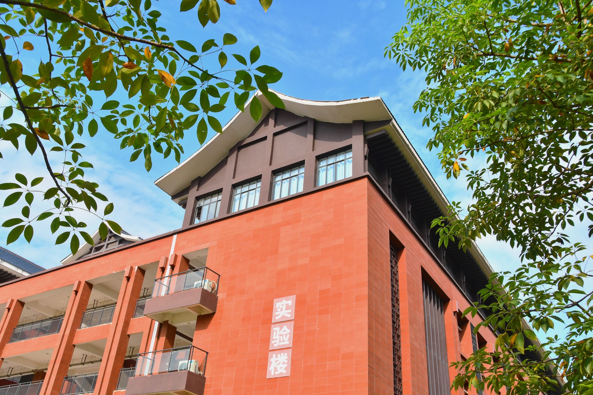 秋叶掩映,楼台清朗