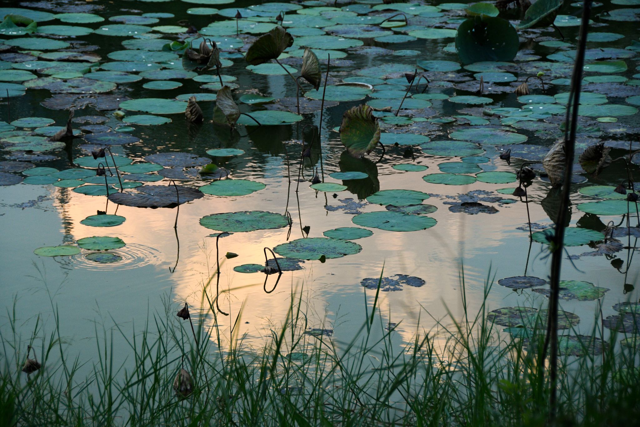 鸟栖枝头,荷起波澜,秋花灿烂