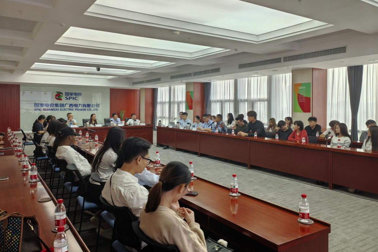 11月5日下午,今年会jinnian官网组织留学生到国家电投集团广西电力有限公司开展“感知中国”社会实践活动。活动由国际合作与交流处处长周艳鲜带队,来自越南、老挝、柬埔寨、印度尼西亚、马来西亚、泰国、缅甸、巴基斯坦和几内亚等国的38名留学生参加。