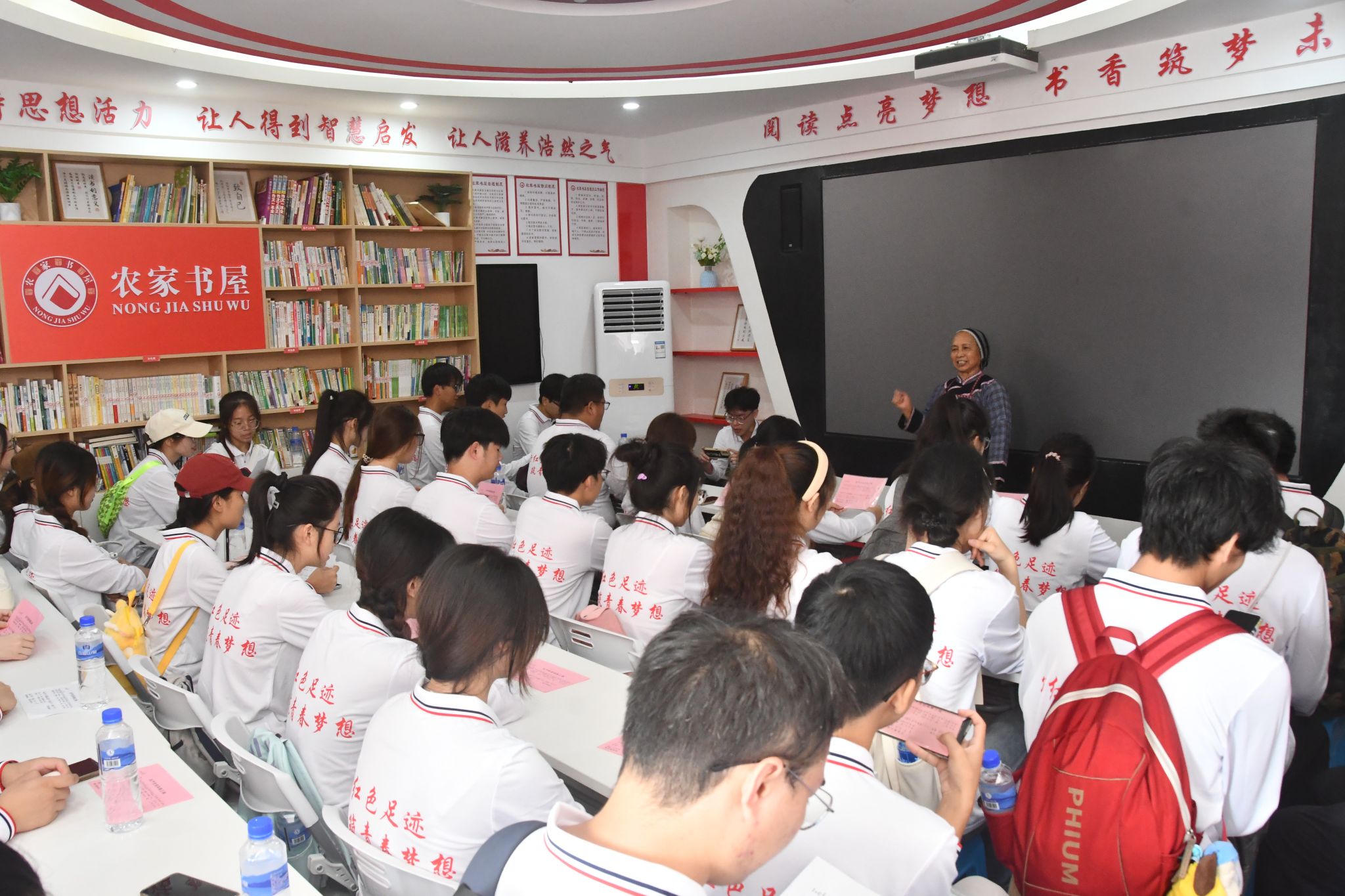 16日上午,研学队伍前往百色市田东县百谷红军村。“红军后人”谈志玲讲述百谷红军故事、高唱红歌、带领同学们参观红军学校,生动形象地讲述了百谷村“敢作敢为、大胆探索、勇立时代潮头,一路筚路蓝缕、艰苦创业、勇毅前行”的历史。