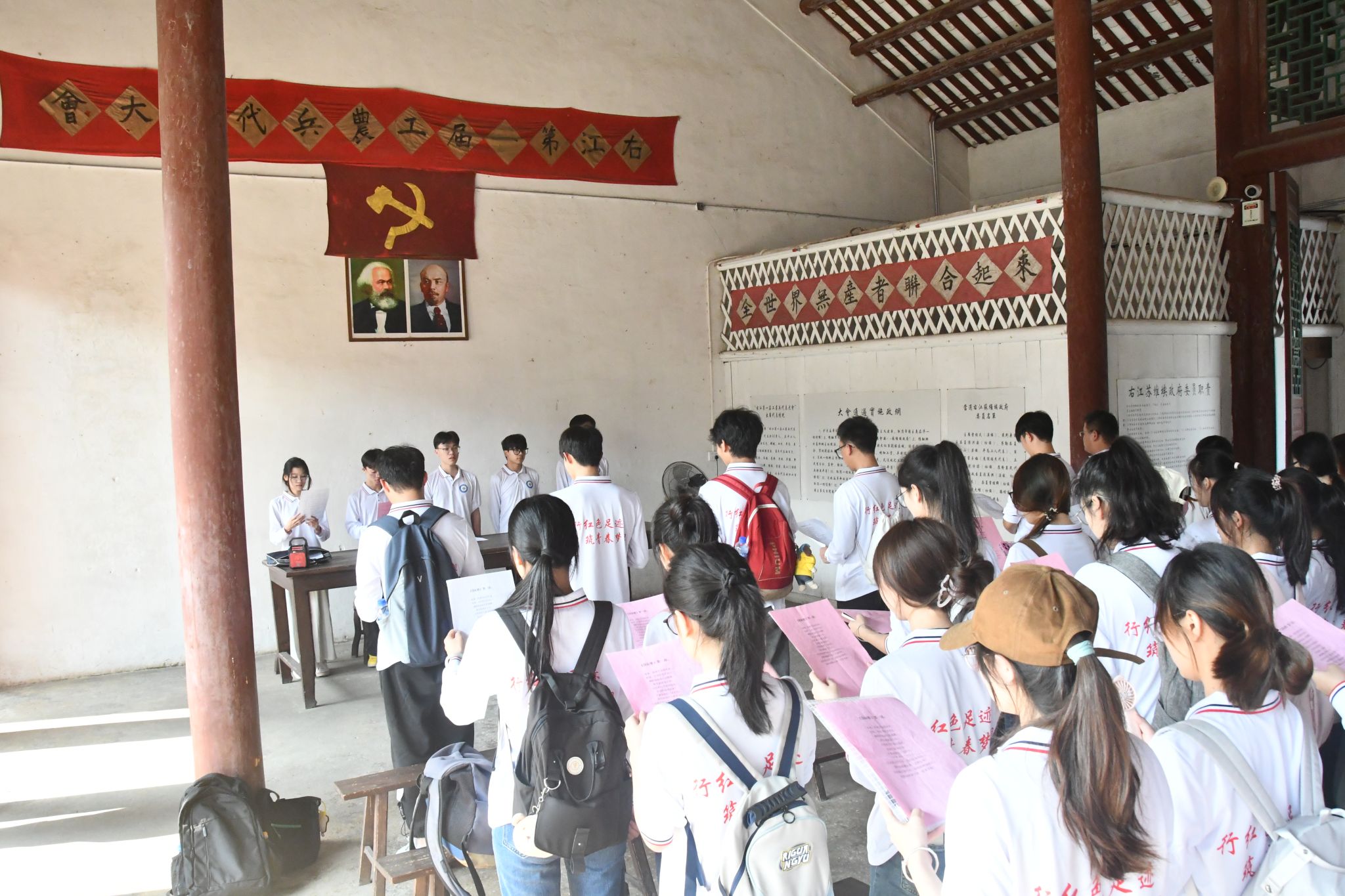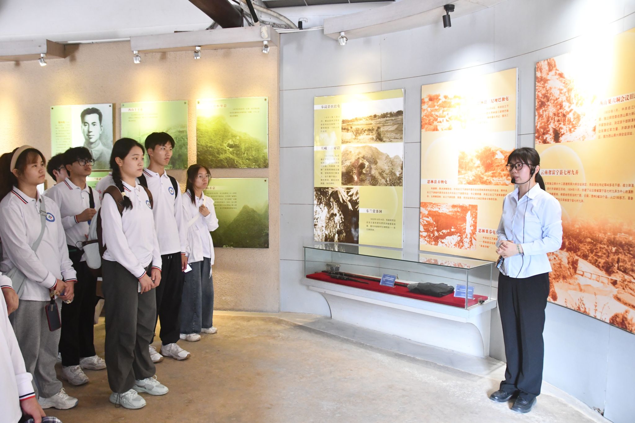 16日下午,研学队伍依次参观右江苏维埃政府旧址、那恒村史馆,珍贵的文物,翔实的史料生动地为师生展示中国共产党领导右江人民进行艰苦卓绝的革命斗争并取得胜利的光辉历程,讴歌了老一辈无产阶级革命家在右江地区领导革命斗争的光辉业绩。