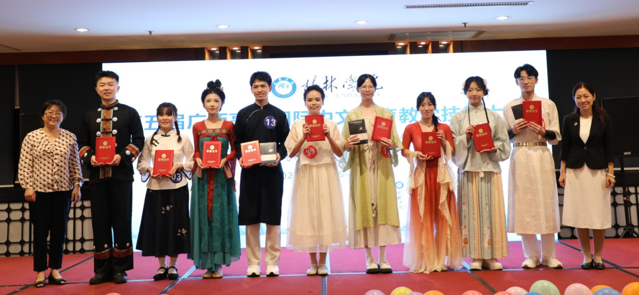 11月16日—17日,由广西本科高校中国语言文学类专业教学指导委员会主办的第五届广西高校国际中文教育教学技能大赛在桂林举行。我校国际教育学院汉语国际教育专业留学生邓碧珍、黄草原分别荣获一等奖、二等奖,国际中文师范专业留学生杨月容荣获三等奖,指导教师崔爱霞获优秀指导教师奖,我校获优秀组织奖。