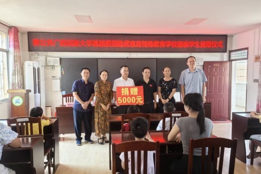 下午,刘晓骥一行来到武宣县特殊教育学校开展捐资助学活动,并与学校师生展开座谈。(初审:黄炤英 编辑:黎倩雅 复审:韦利坤 终审:孙寿媚)