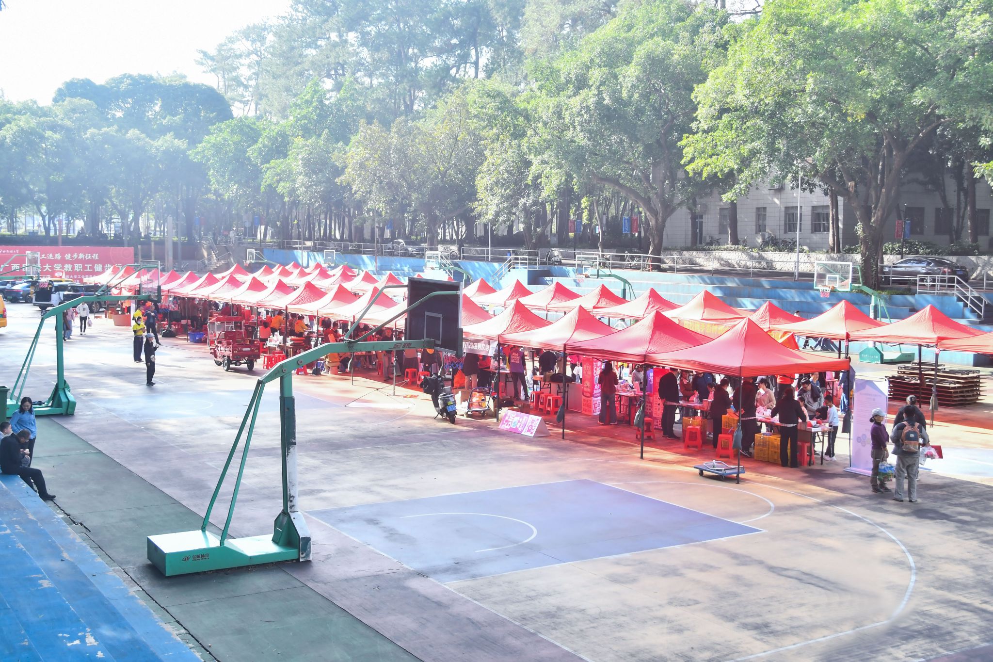终点处组织开展便民体验活动,共设置10余个服务摊位,旨在为教职工提供多元便捷的生活服务。