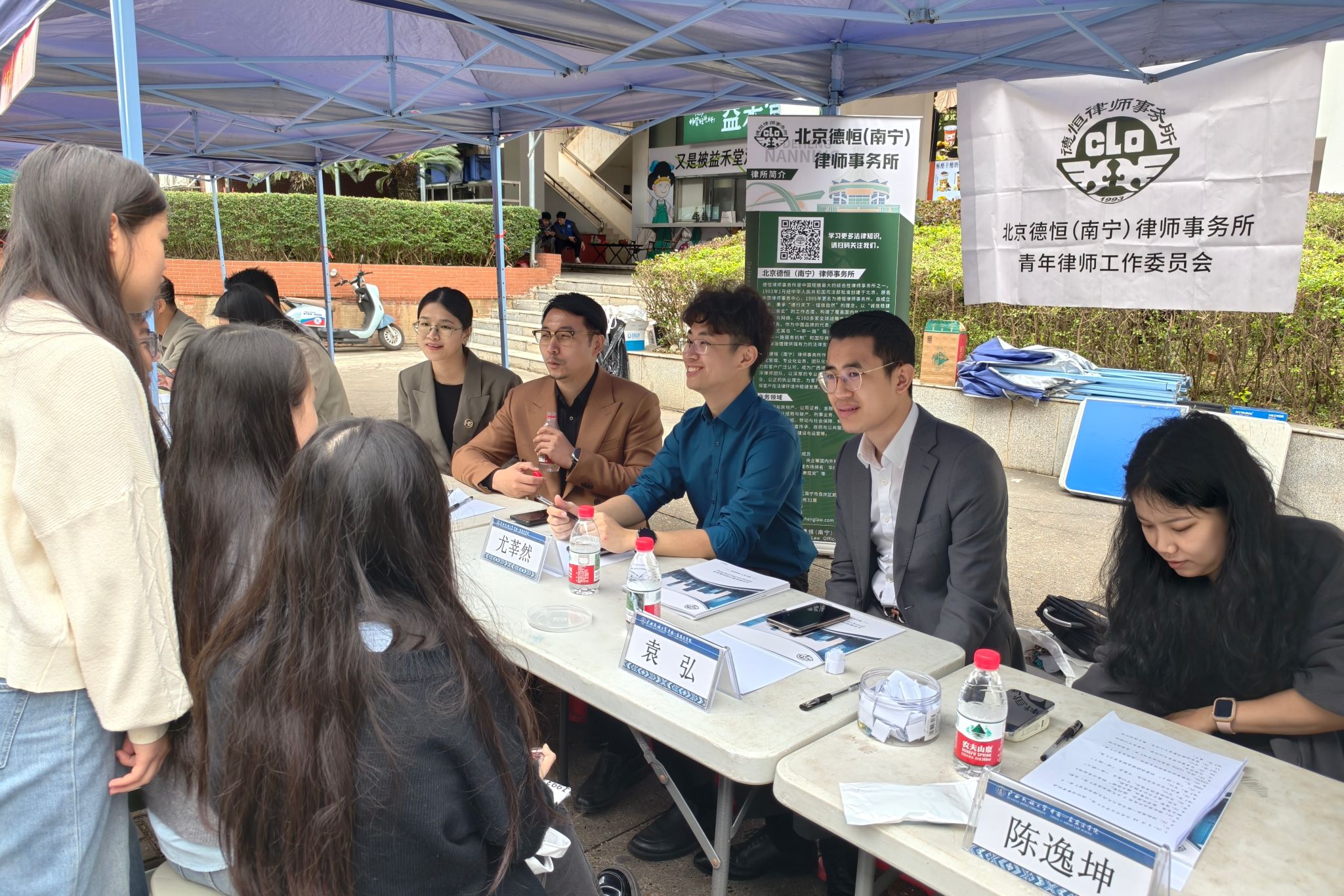 法律咨询区由学校法律援助中心及校外执业律师组成专业团队,面向师生开展“一对一”法律问诊。针对日常消费中遇到的纠纷解析、权益受损等疑问,提供定制化法律建议,指导师生通过合法途径维护自身权益。广西诚上金律师事务所主任谢仁文表示,希望法学院学生秉持法治初心守护消费权益,校所深化联动共助青年成长;北京德恒(南宁)律师事务所主任盘旋寄语法学院学生,学好《中华人民共和国消费者权益保护法》,用好专业知识,向身边朋友提供帮助。