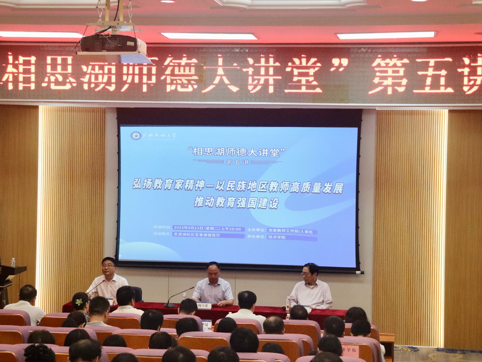 经济学院党委书记韦志江表示,希望老师们以此次讲座为契机,将教育家精神化为育人实践,以教育之光点亮边疆学子前程,为教育强国建设和民族地区高质量发展交出教育工作者的优异答卷。(初审:韦志江 编辑:黎倩雅 复审:李建瑾 终审:孙寿媚)
