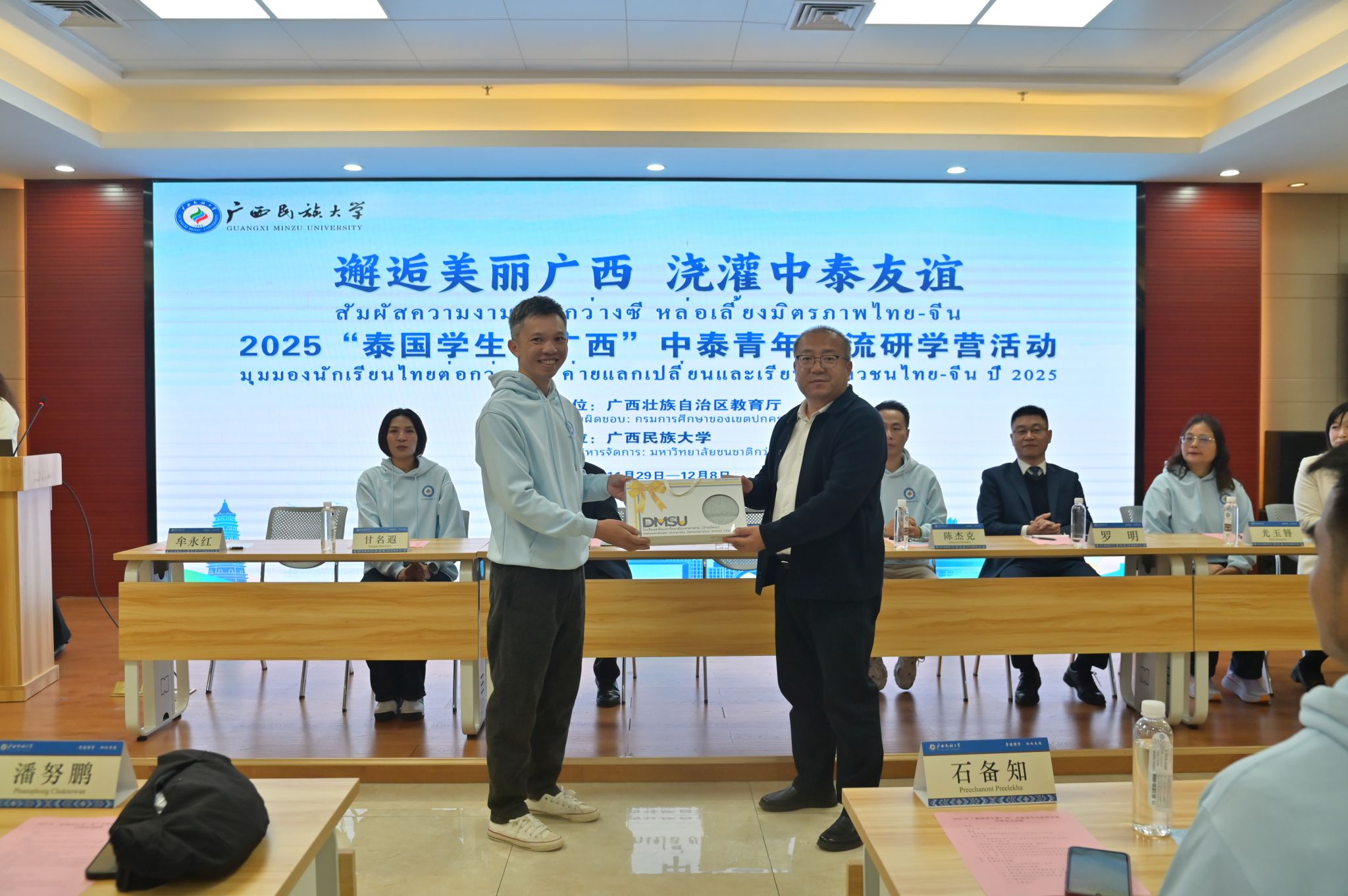 【大学生通讯社报道】11月29日上午,2025“泰国留学生看广西”中泰青年交流研学营开营仪式在今年会jinnian官网相思湖校区国际文化交流中心举行。学校党委常委、副校长姜明国,国际合作与交流处(国际教育学院)有关负责人、泰方学校教师代表及泰国青年共同出席开营仪式。