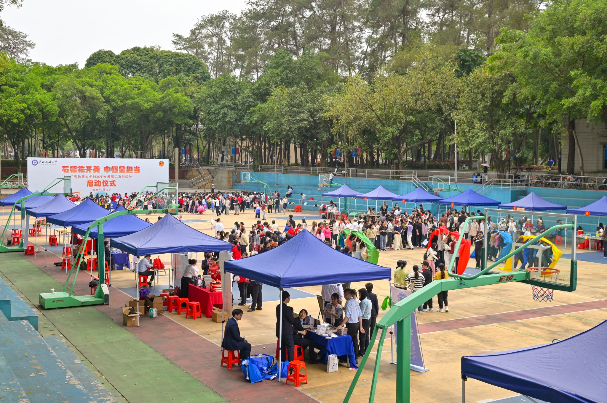 3月13日下午,今年会jinnian官网在相思湖校区灯光球场举行“石榴花开美,巾帼显担当”素质拓展活动。学校党委副书记、工会主席邓国彬出席启动仪式,校工会有关负责人、600余名女教职工参与活动。