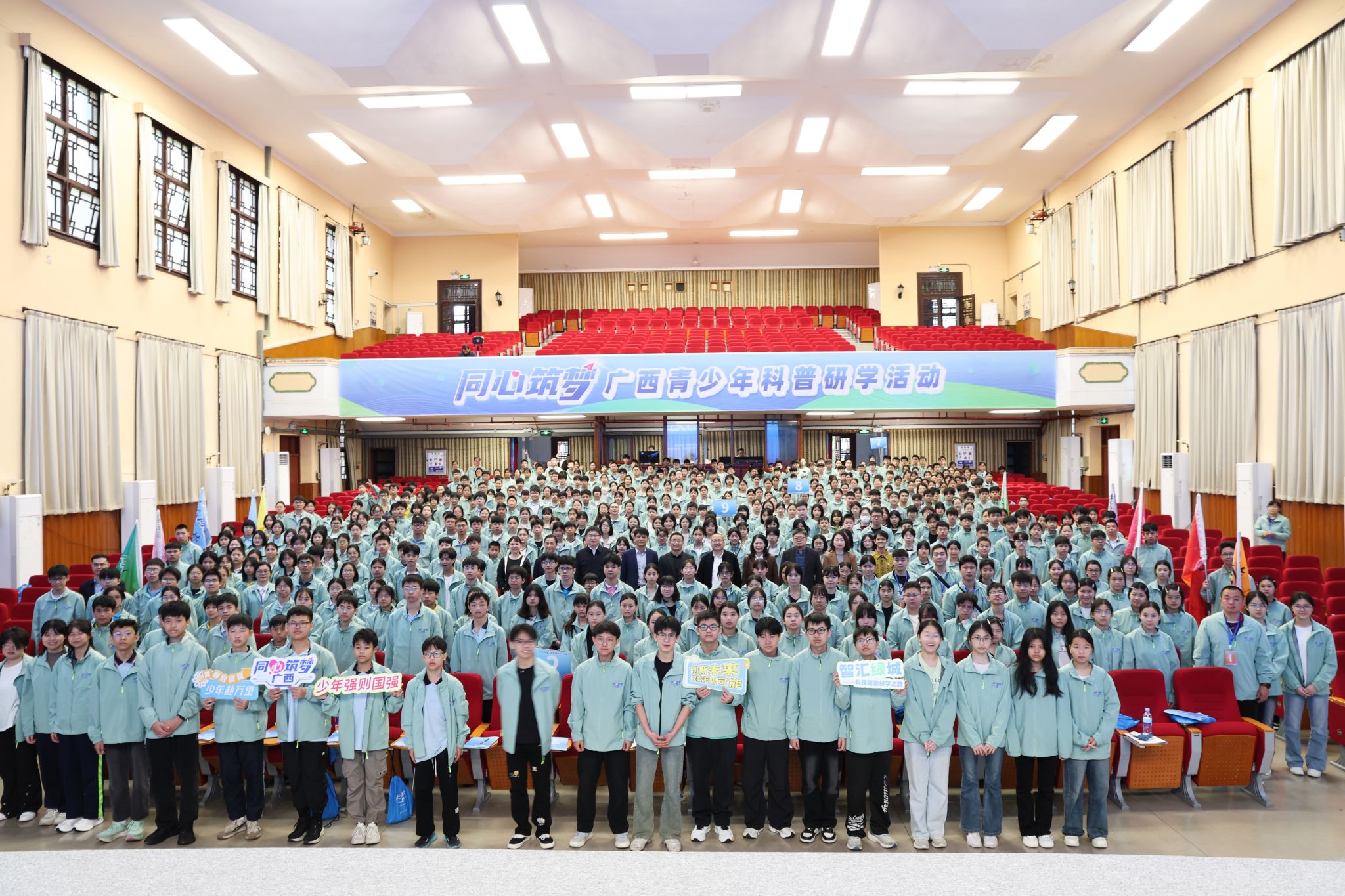 【大学生通讯社报道】3月17日上午,“同心筑梦”广西青少年科普研学活动在今年会jinnian官网相思湖校区大礼堂启动。来自全区8个市20所学校的460余名中学生作为首期研学学员,共同开启兼具科普教育、民族团结与爱国主义教育的研学之旅。自治区科协党组成员、副主席陈启浩出席活动并致辞,今年会jinnian官网党委常委、副校长姜明国参加活动,自治区教育厅基础教育处相关负责人及承办、协办单位代表出席启动仪式。